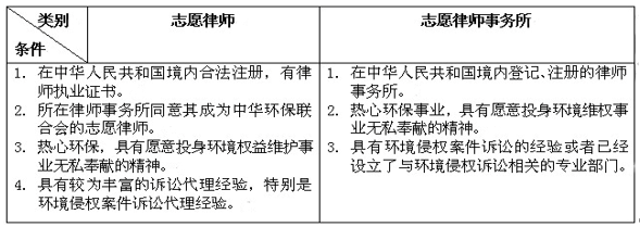 审核合格的志愿律师、志愿律师事务所(派代表1名)均须参加中华环保联合会举办的环境法律培训班并签署合作协议,方正式成为中华环保联合会环境维权志愿律师(所),颁发结业证书、志愿律师证或志愿律师事务所牌匾。