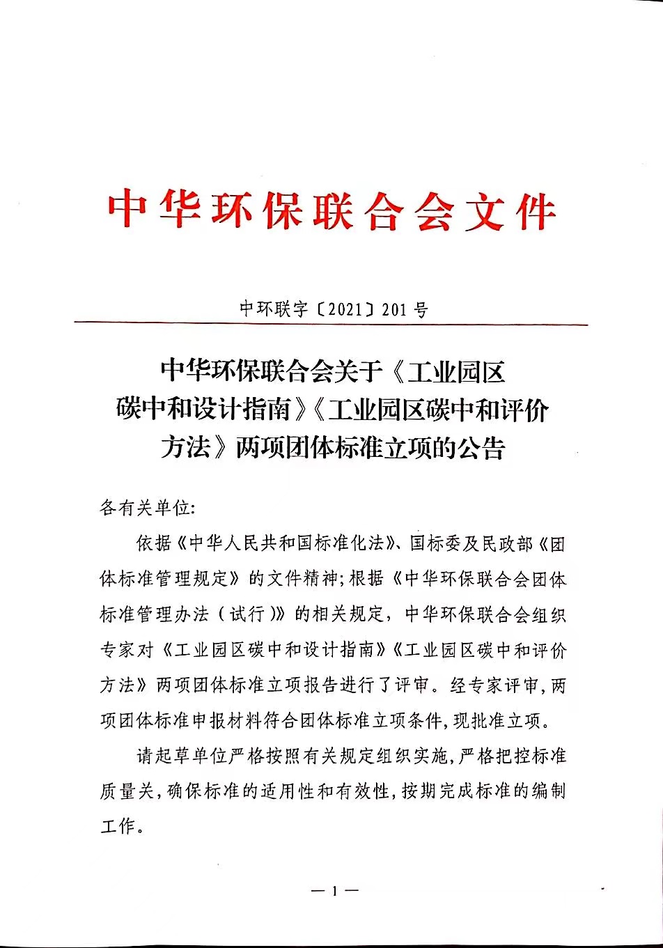 关于《工业园区碳中和设计指南》《工业园区碳中和评价方法》两项团体标准立项的公告
