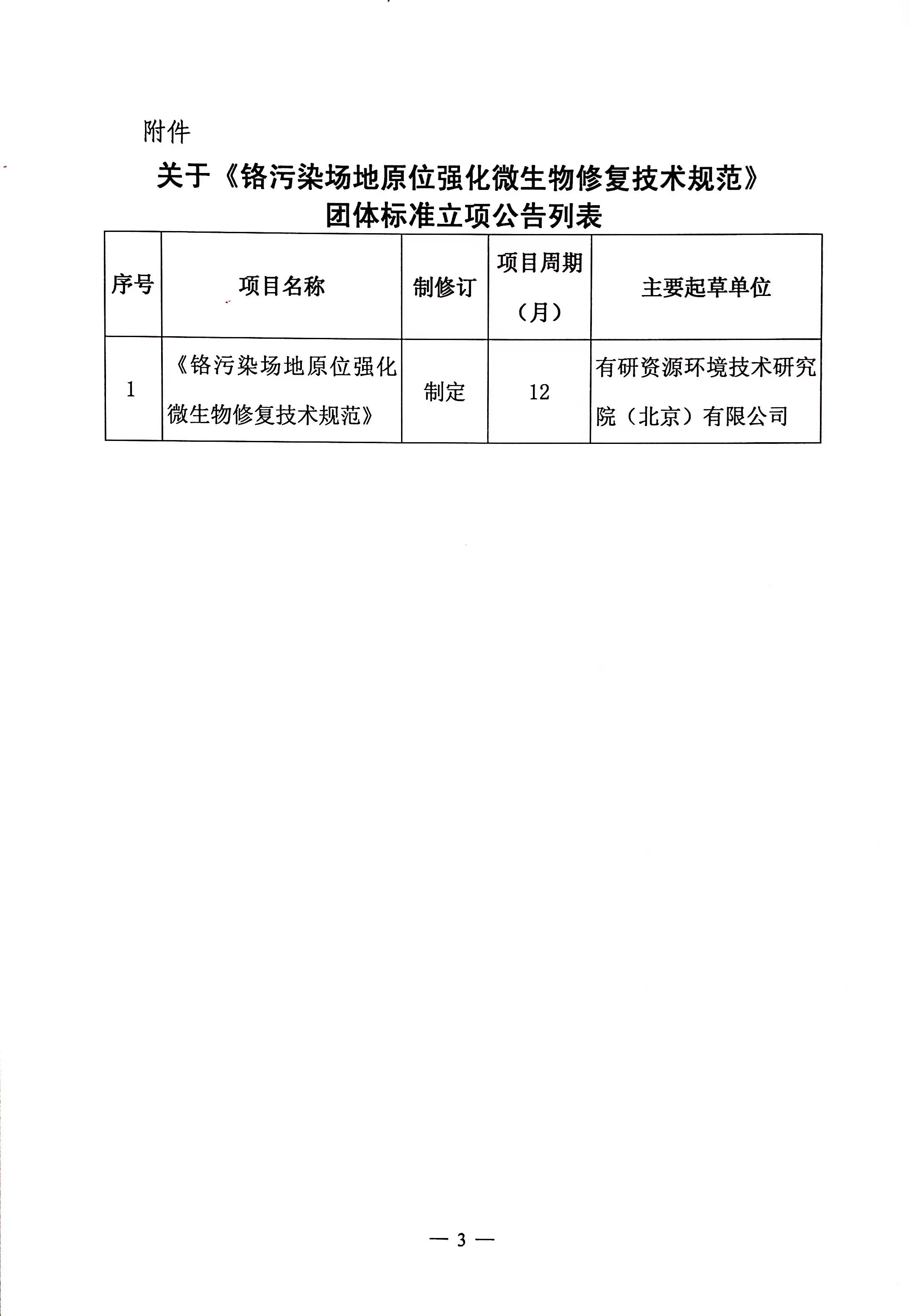 关于《铬污染场地原位强化微生物修复技术规范》团体标准立项的公告