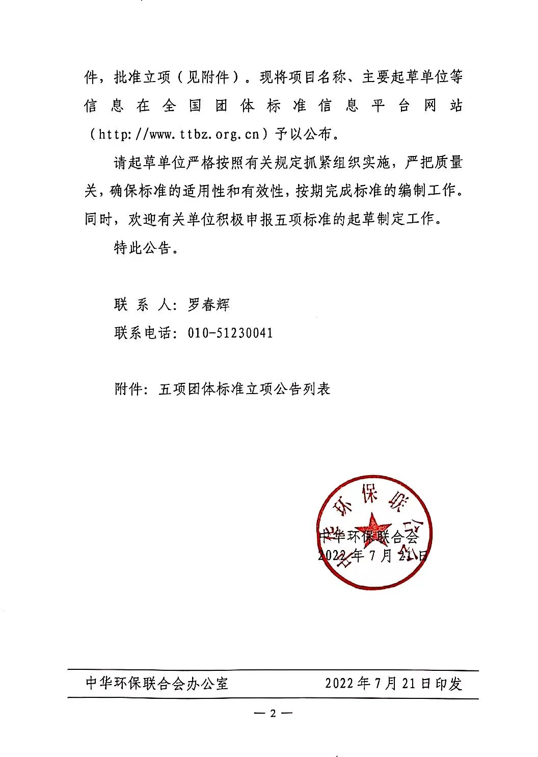 关于开展 2022年度中华环保联合会