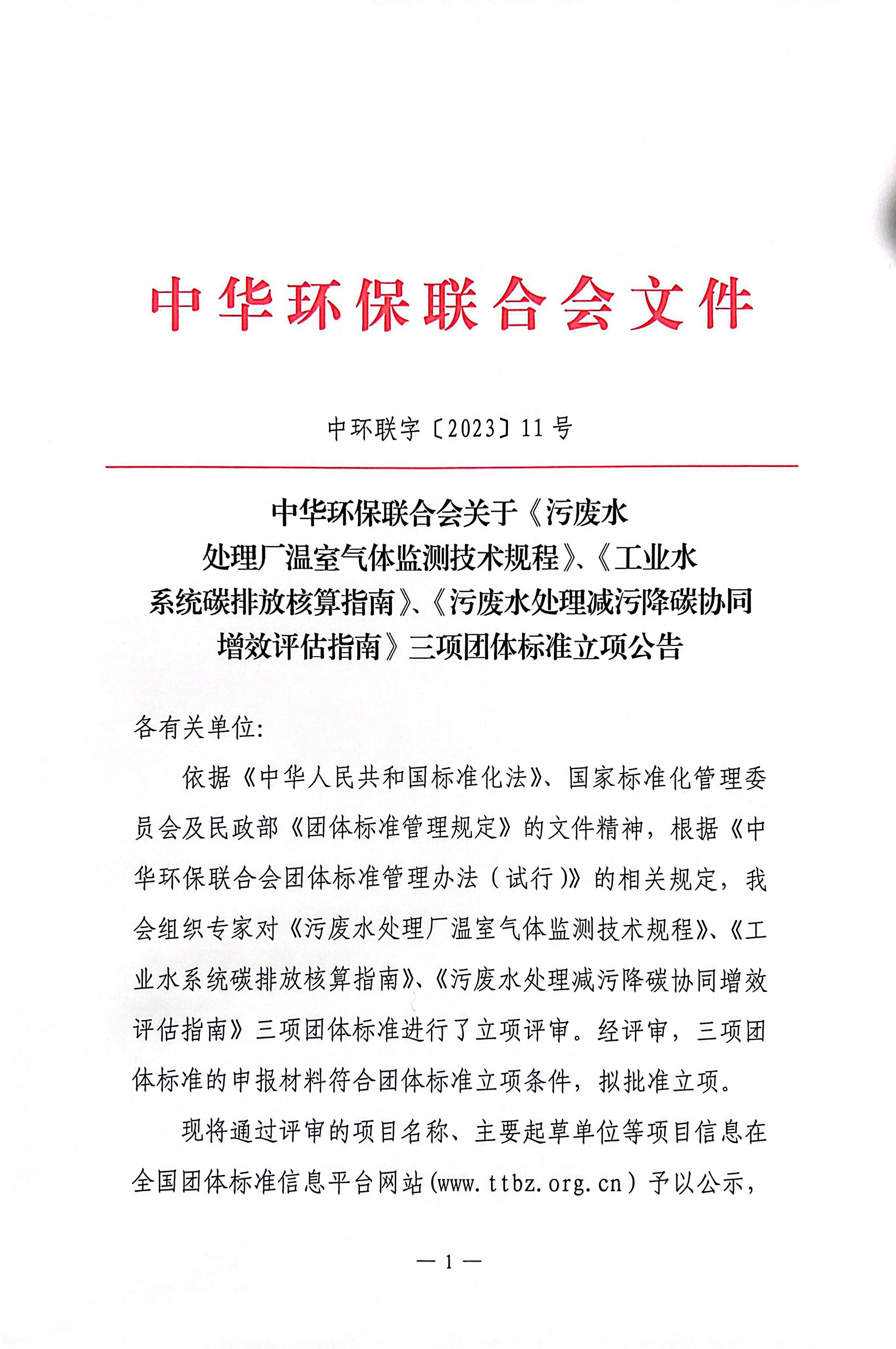 关于《污废水处理厂温室气体监测技术规程》等三项团体标准立项公告