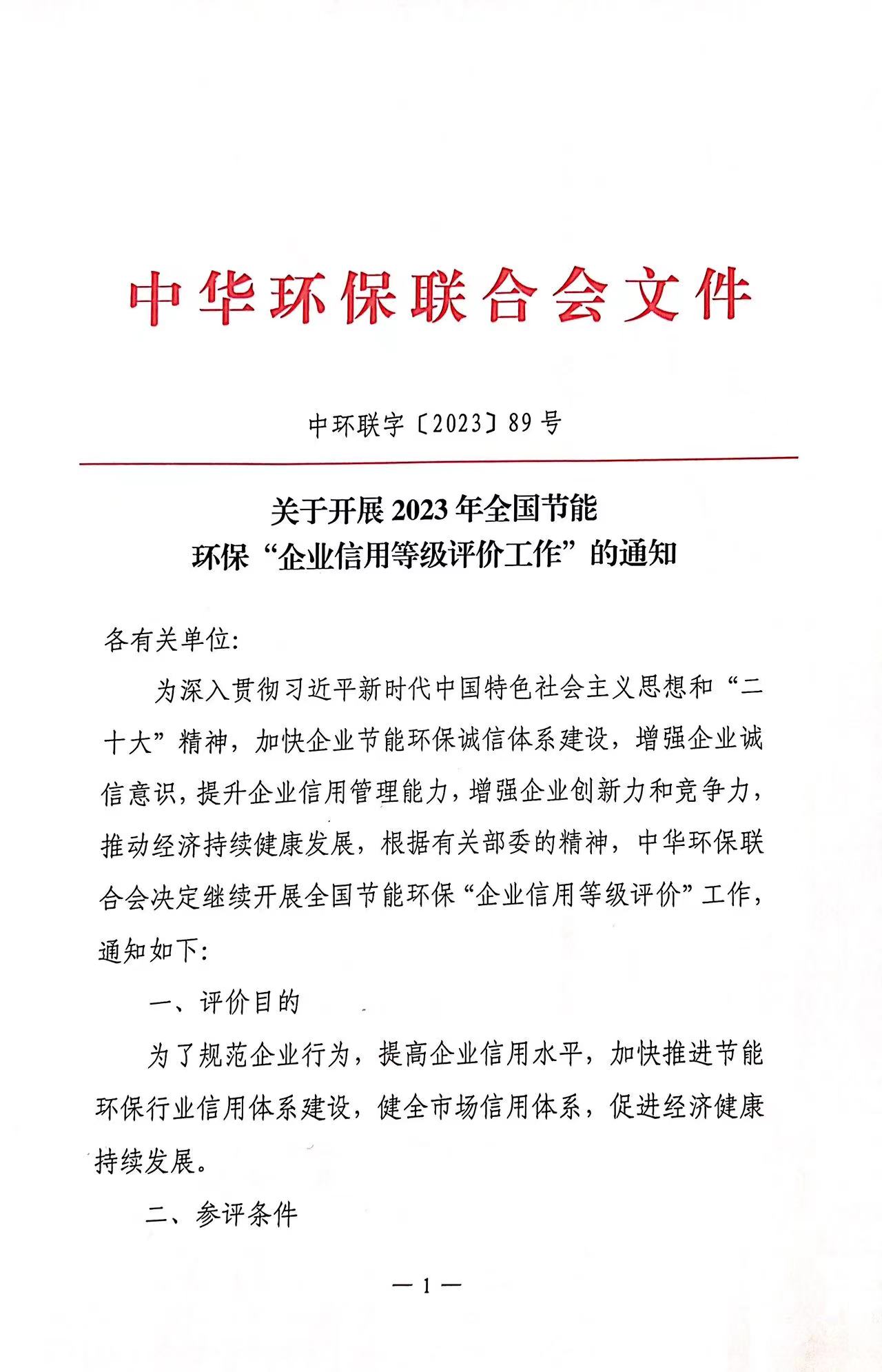 关于开展2023年全国节能环保“企业信用等级评价工作”的通知