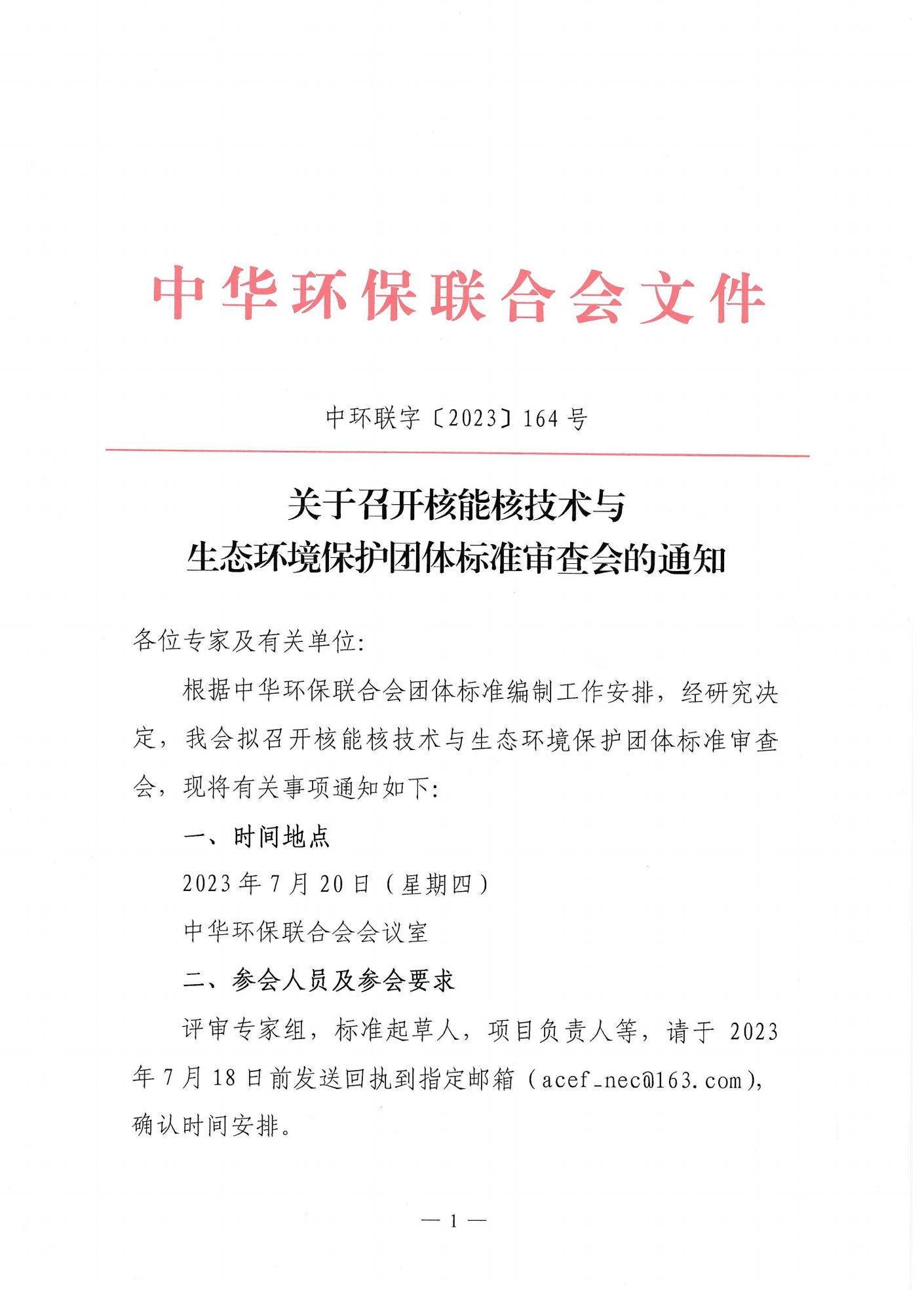 关于召开核能核技术与生态环境保护团体标准审查会的通知