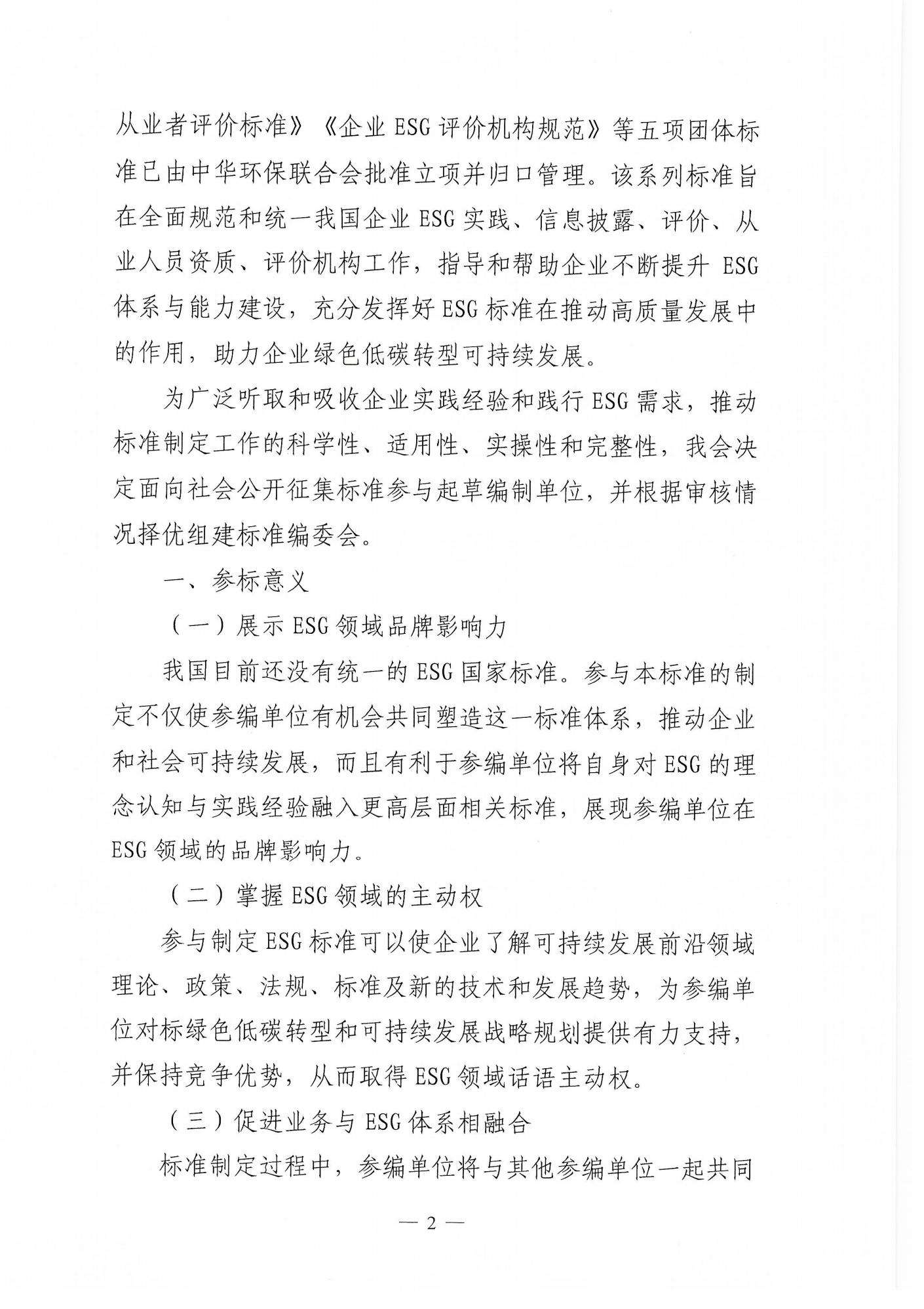 关于征集参加《企业ESG工作指南》等五项团体标准起草编制单位的通知