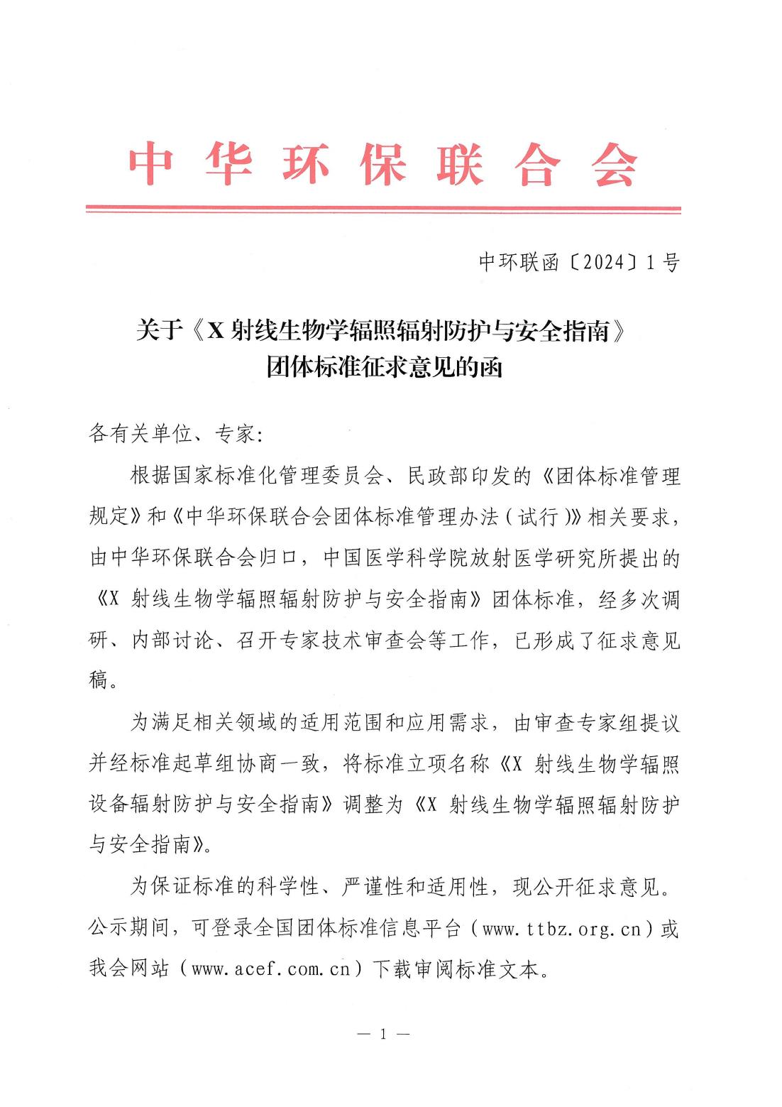 关于《X射线生物学辐照辐射防护与安全指南》团体标准征求意见的函