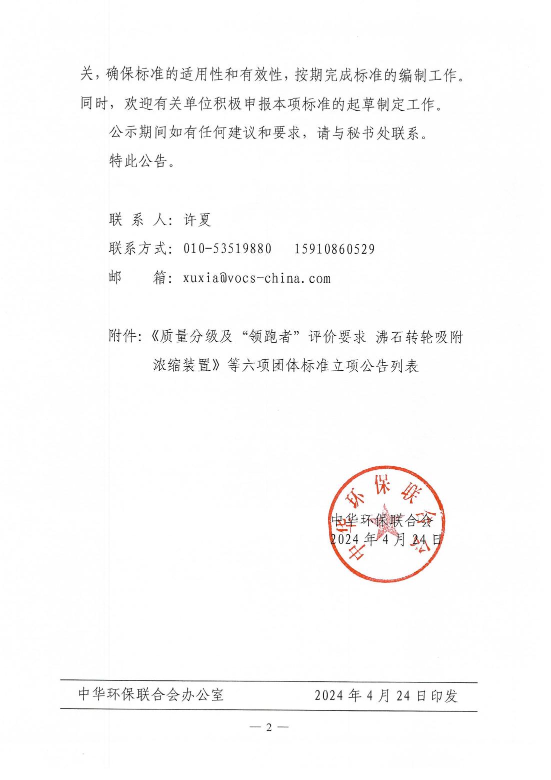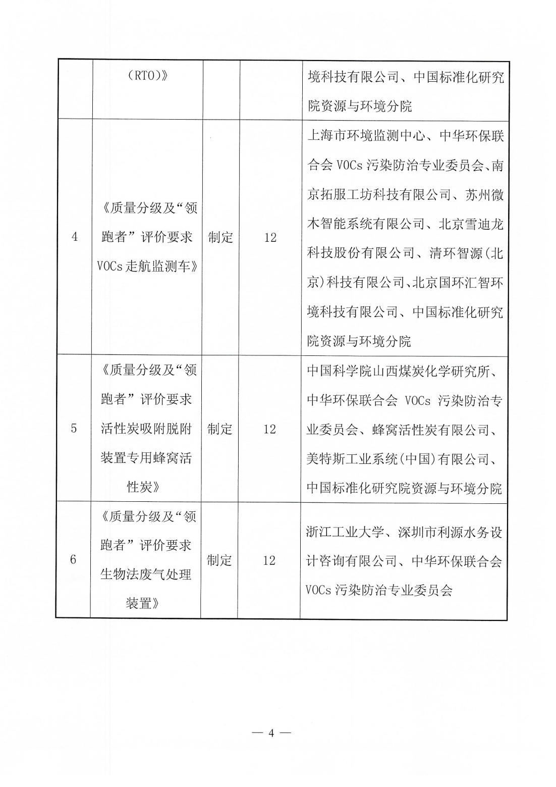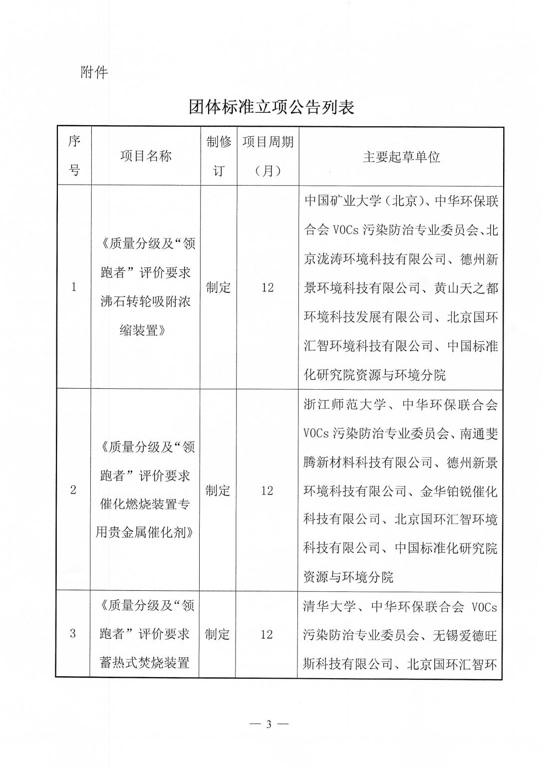 关于《质量分级及“领跑者”评价要求 沸石转轮吸附浓缩装置》等六项团体标准立项的公告