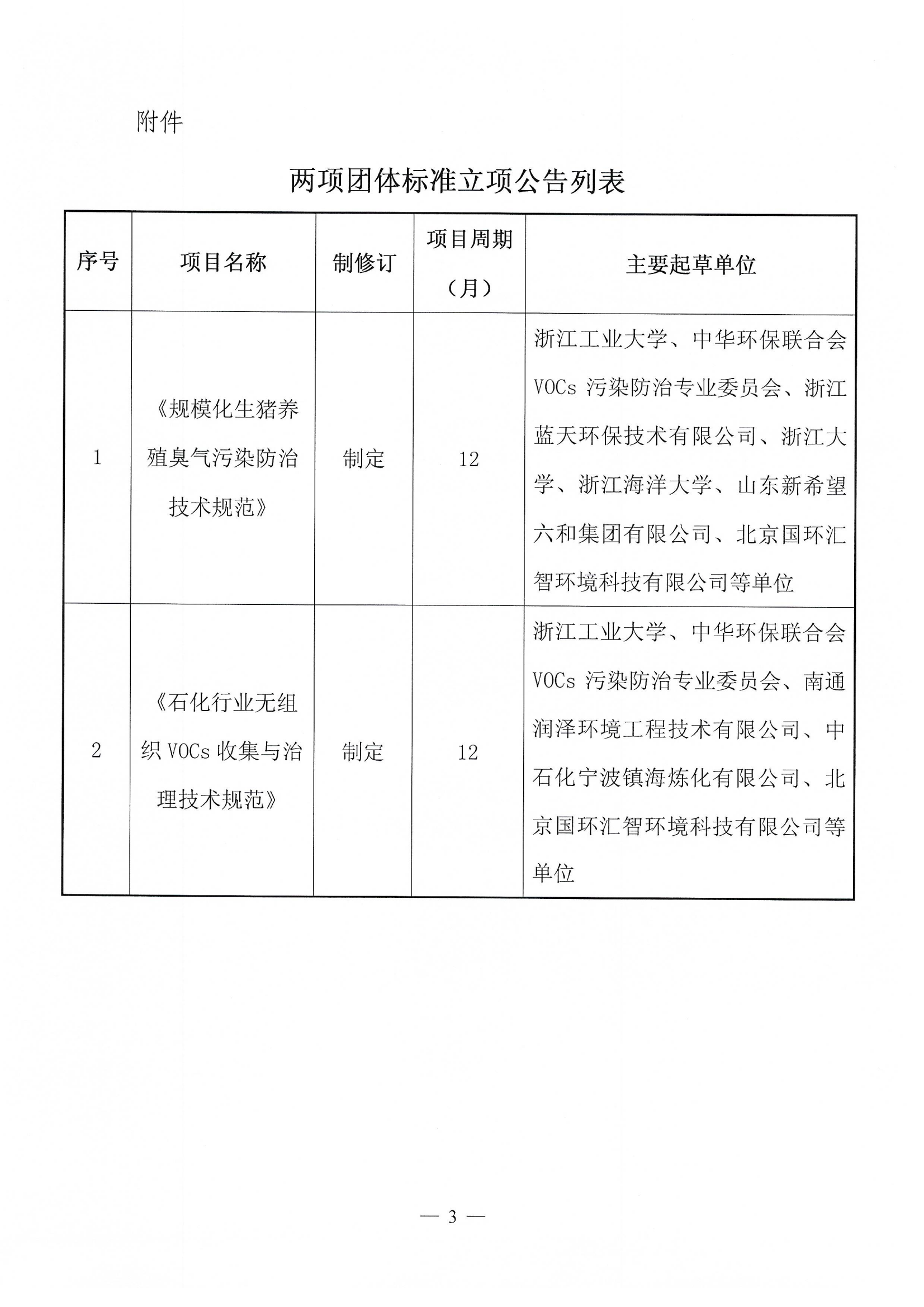 关于《规模化生猪养殖臭气污染防治技术规范》等两项团体标准立项的公告