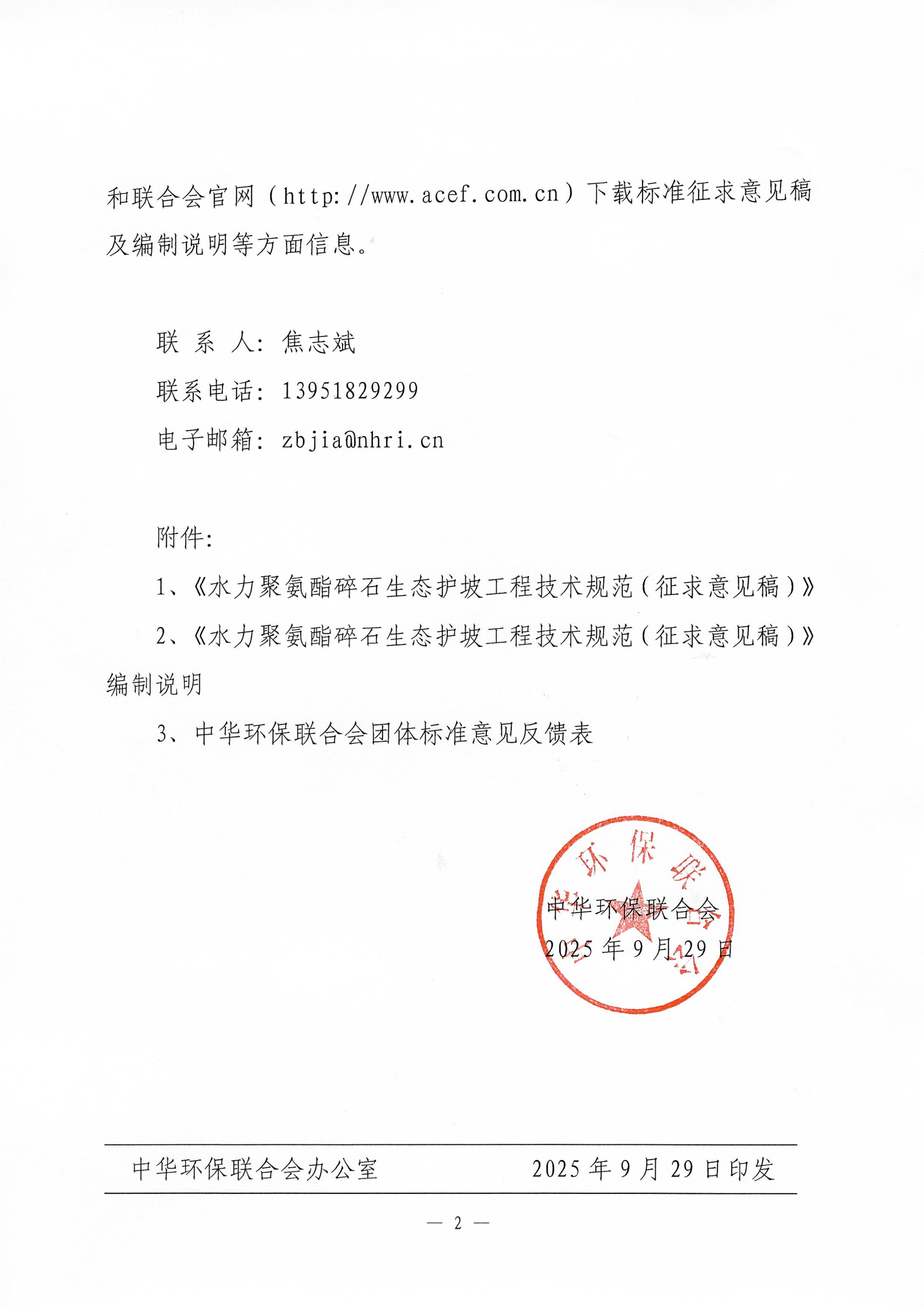 关于《水力聚氨酯碎石生态护坡工程技术规范》团体标准征求意见的函