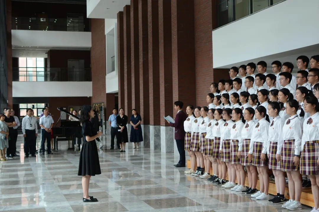 杭高钱江校区“闻潮”合唱团的名字非常应景,比之更出彩的,是他们齐声合唱《同一条钱塘江》时美妙的歌声。这首写于近十年前的歌曲,是属于母亲河的歌。而“闻潮合唱团”的杭高学子们在音乐老师南希的指挥下唱出的,也正是关于母亲河的声音。作为作者,作曲老师、青年作曲家陆琦对此很满意,他对同学们的表现给予了高度的赞扬。