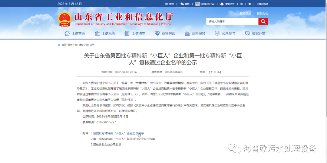 喜讯!祝贺海普欧环保被工信部认定为国家级专精特新“小巨人”企业