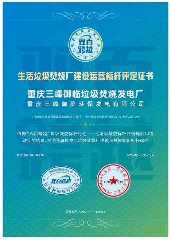 此外,论坛现场还举行了“双百跨越”垃圾焚烧标杆比选活动成果分享及颁奖典礼,三峰御临垃圾焚烧发电项目凭借其智慧管控系统荣获“建设运营智能化标杆”称号,成为第二批12座标杆电厂之一。加上第一批入选标杆项目的三峰百果园垃圾焚烧发电厂、南宁三峰垃圾焚烧发电厂,三峰环境集团现有3座垃圾焚烧发电厂成为标杆项目。