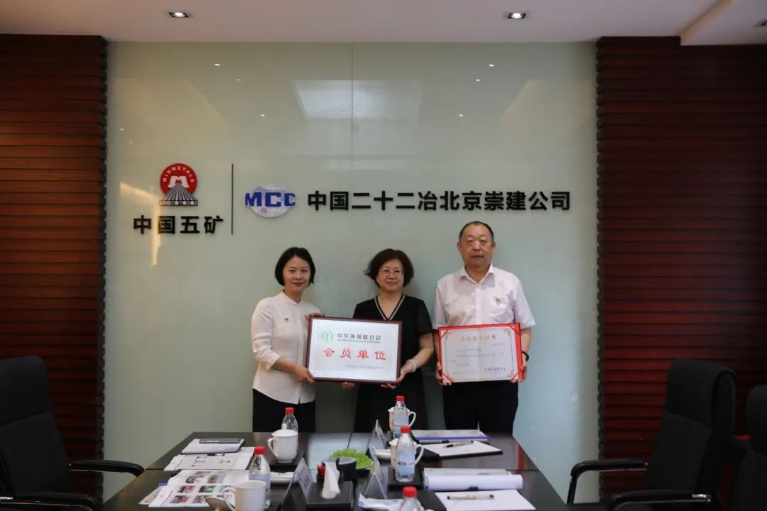 6月19日,中华环保联合会副主席兼秘书长谢玉红一行来到中国二十二冶集团北京崇建公司,授予中国二十二冶集团成为中华环保联合会会员单位并颁发证书。