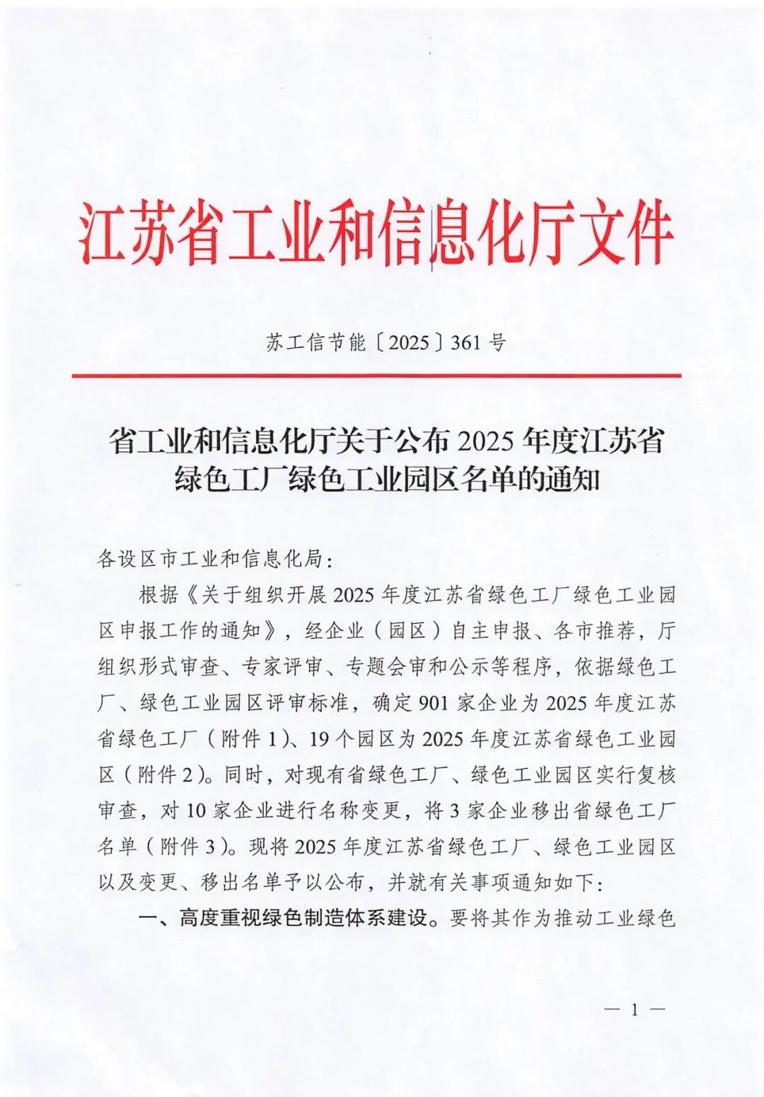 近日,江苏省工信厅公示了2025年度江苏省绿色工厂入围名单。盛剑科技旗下全资子公司江苏盛剑环境设备有限公司凭借绿色制造方面的系统化实践与突出成效,成功入围!这标志着盛剑科技在可持续发展道路上迈出了又一坚实步伐!