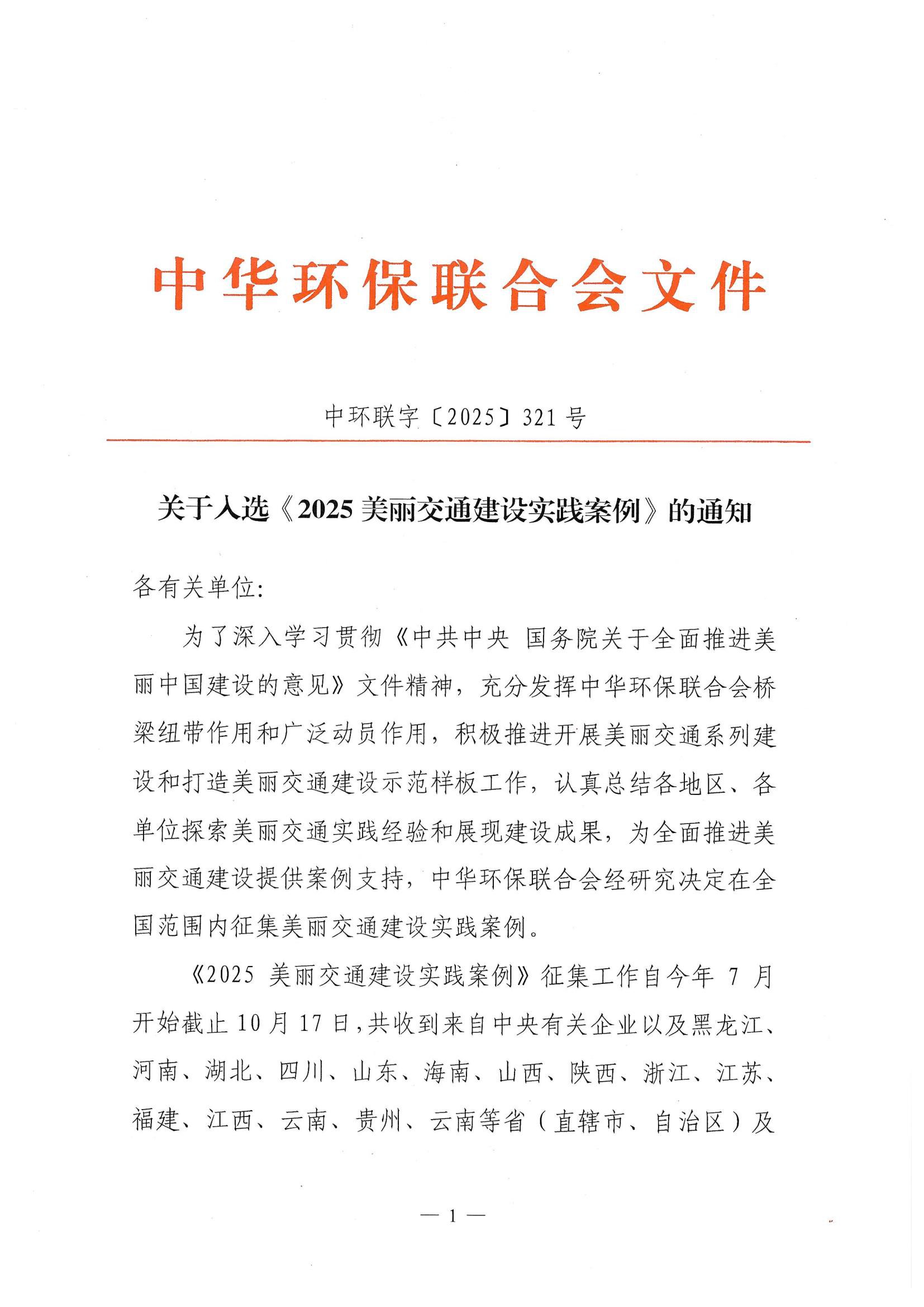 关于入选《2025美丽交通建设实践案例》的通知