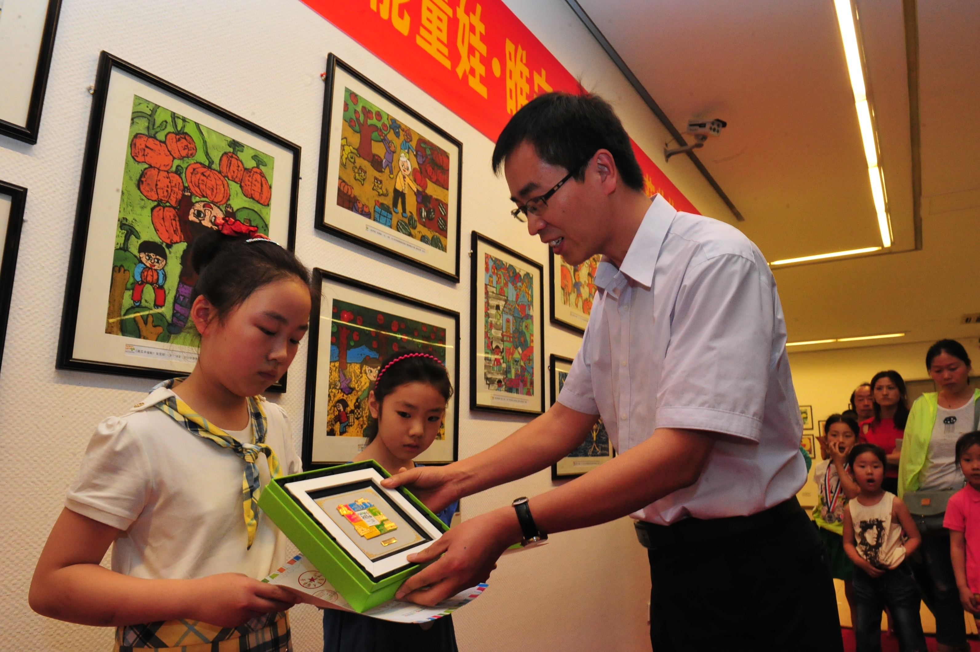 中华环保联合会宣传部部长李瑞东为获奖小朋友颁奖