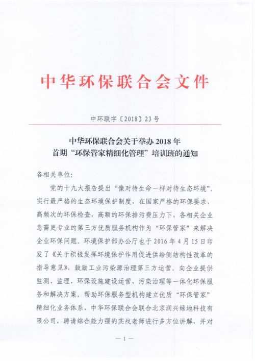 关于举办2018年首期环保管家精细化管理培训班的通知