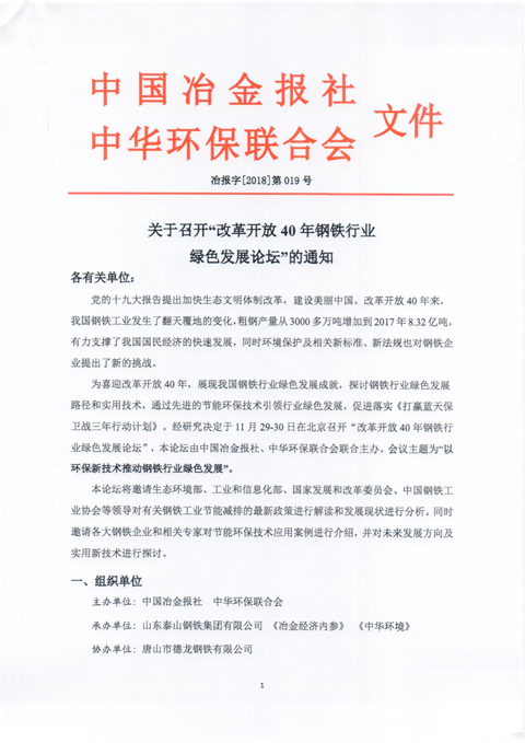 关于召开“改革开放40年钢铁行业绿色发展论坛”的通知