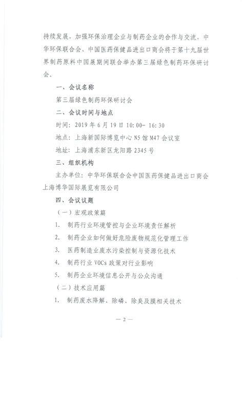 关于举办第三届绿色制药环保研讨会的通知