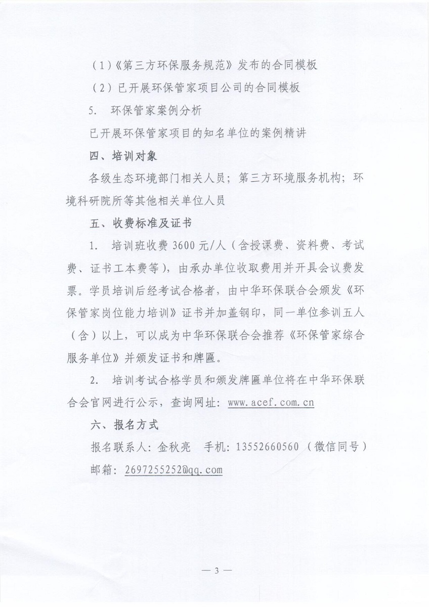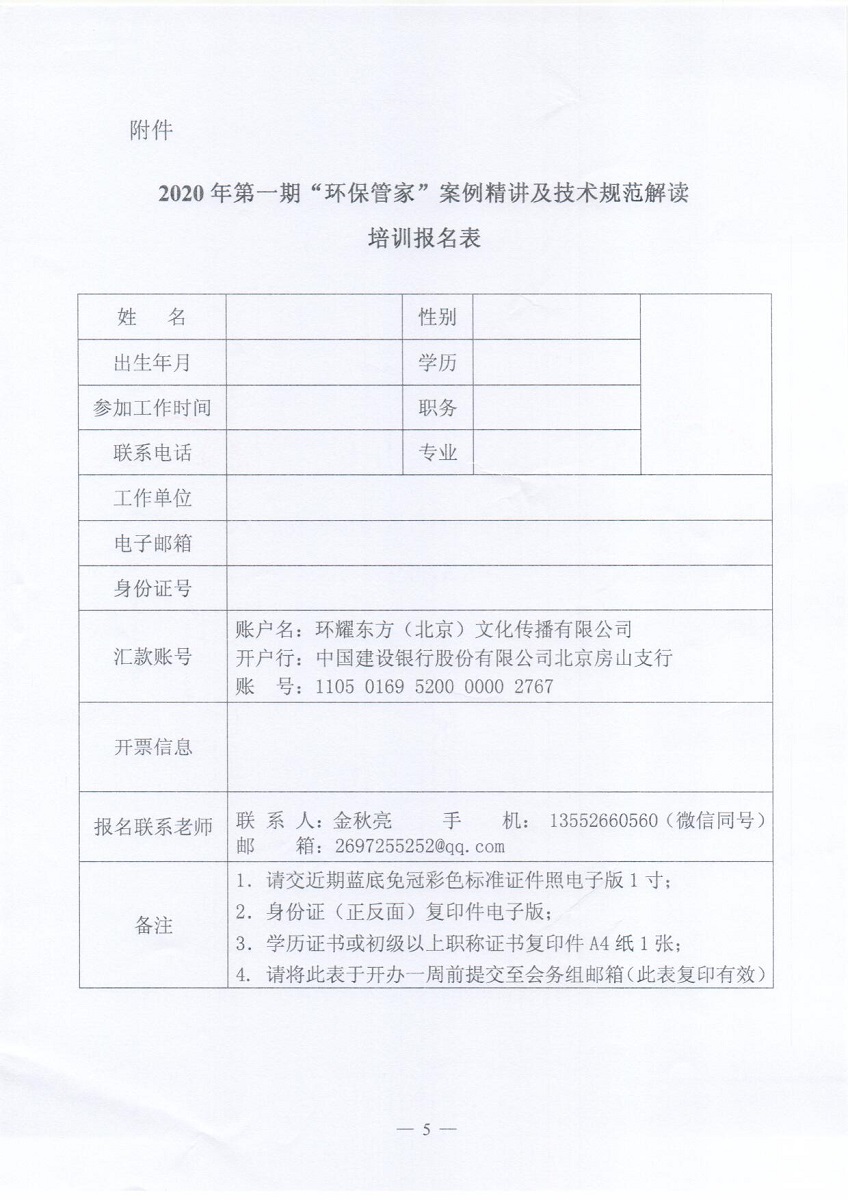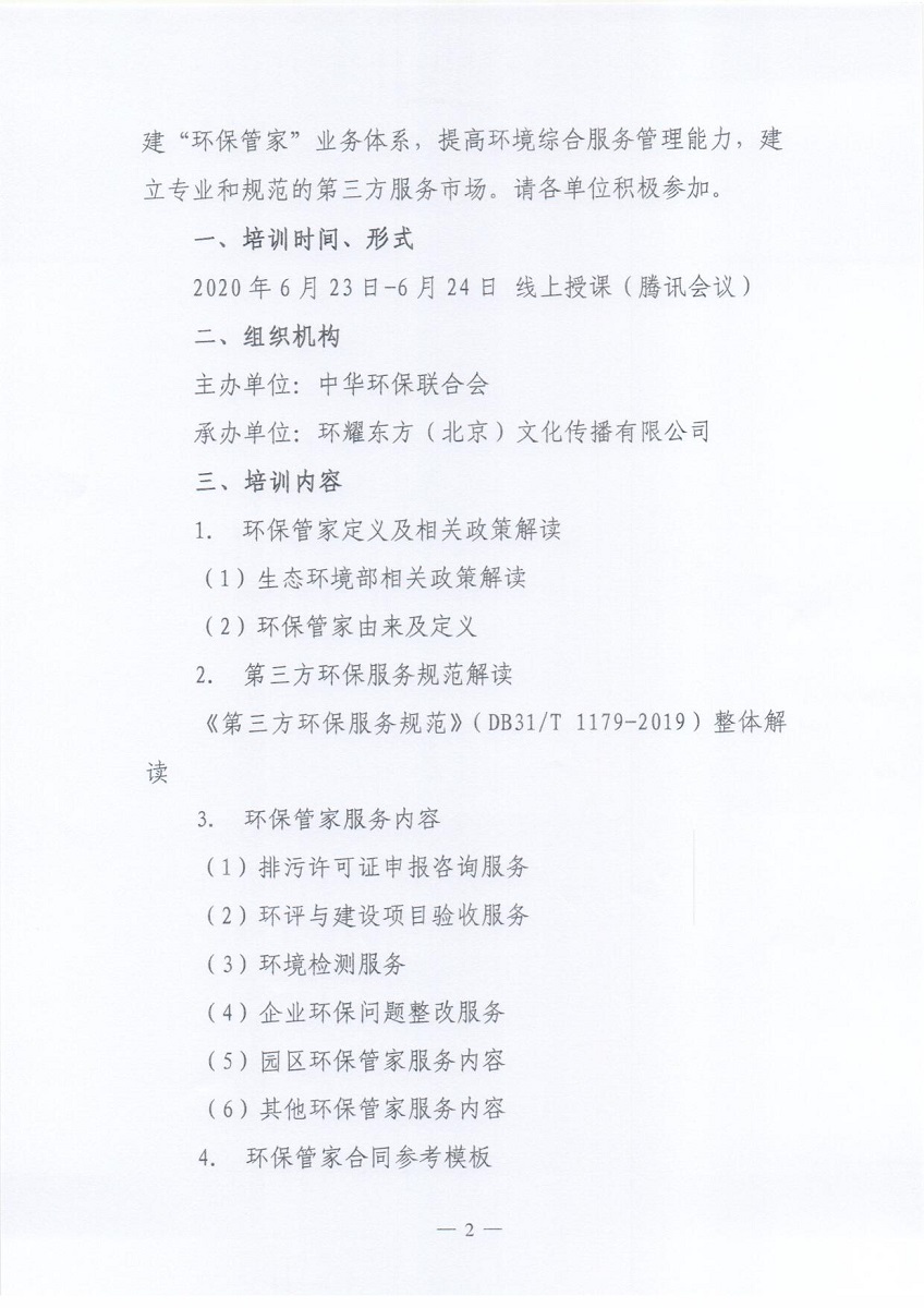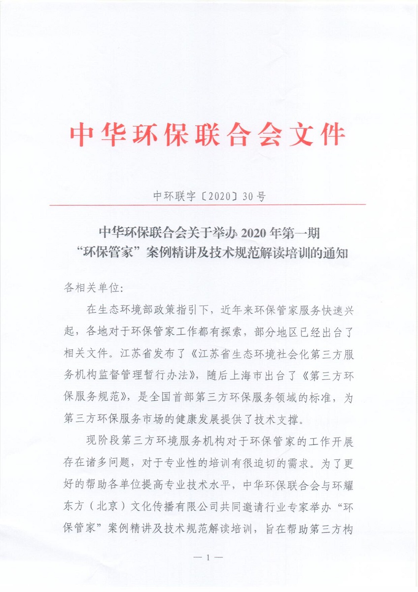 中华环保联合会关于举办2020年第一期“环保管家”案例精讲及技术规范解读培训的通知
