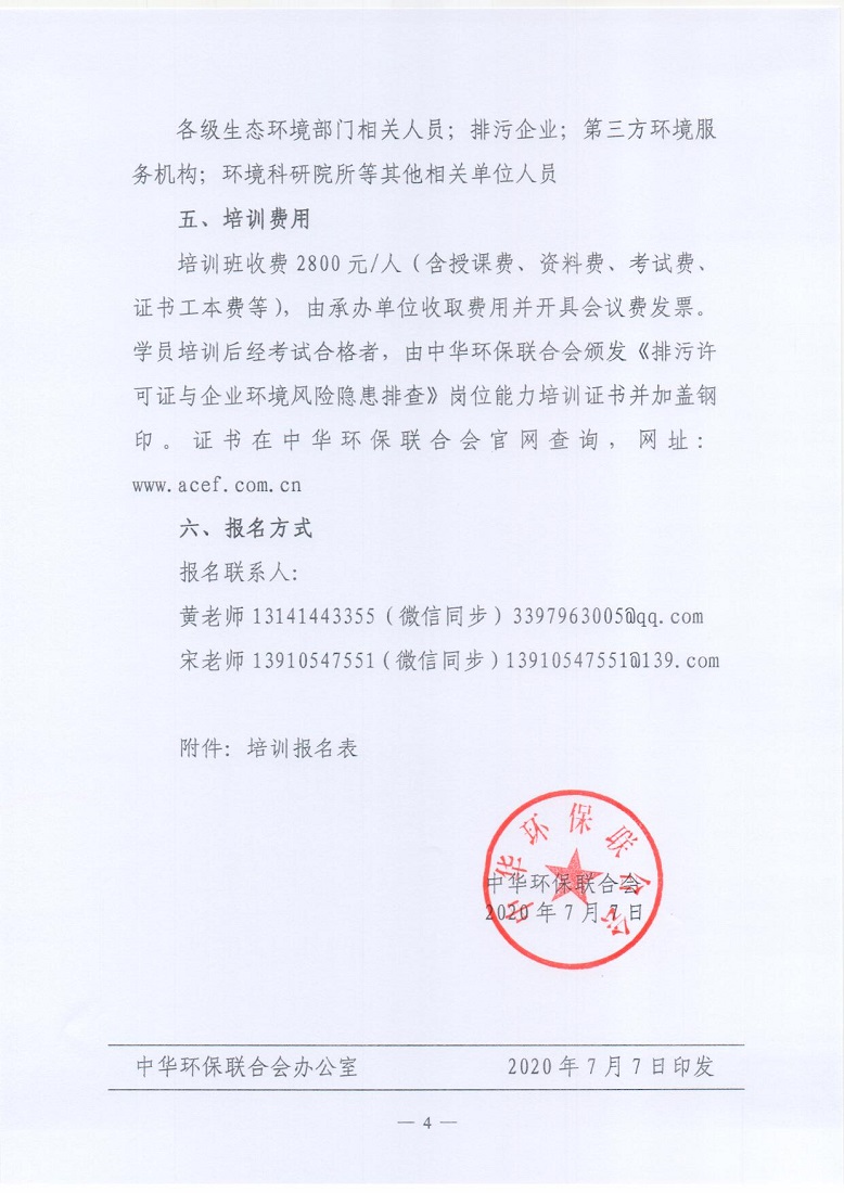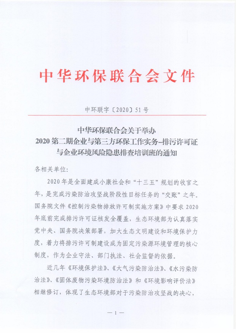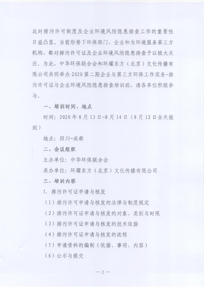 关于举办2020第二期企业与第三方环保工作实务-排污许可证与企业环境风险隐患排查培训班的通知