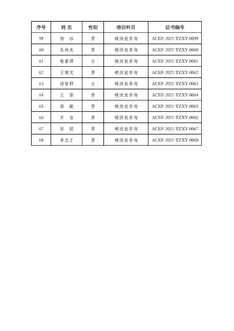 2021年第5期“碳排放管理(碳排放交易员、碳排放咨询员)技术培训班”合格学员公示