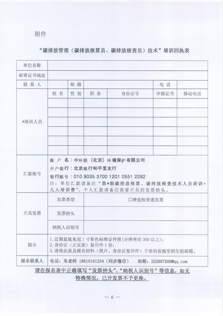 “碳排放管理(碳排放核算员、碳排放核查员)技术”培训回执表