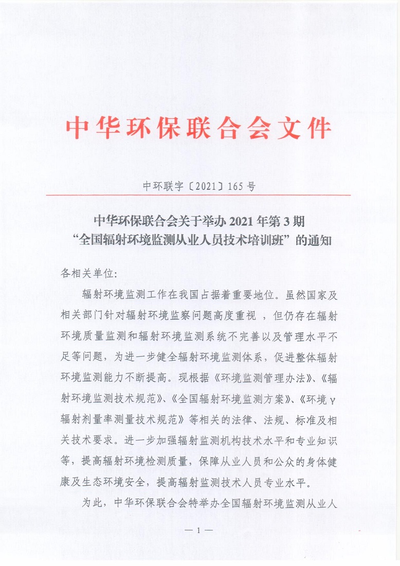 关于举办2021年第3期“全国辐射环境监测从业人员技术培训班”的通知