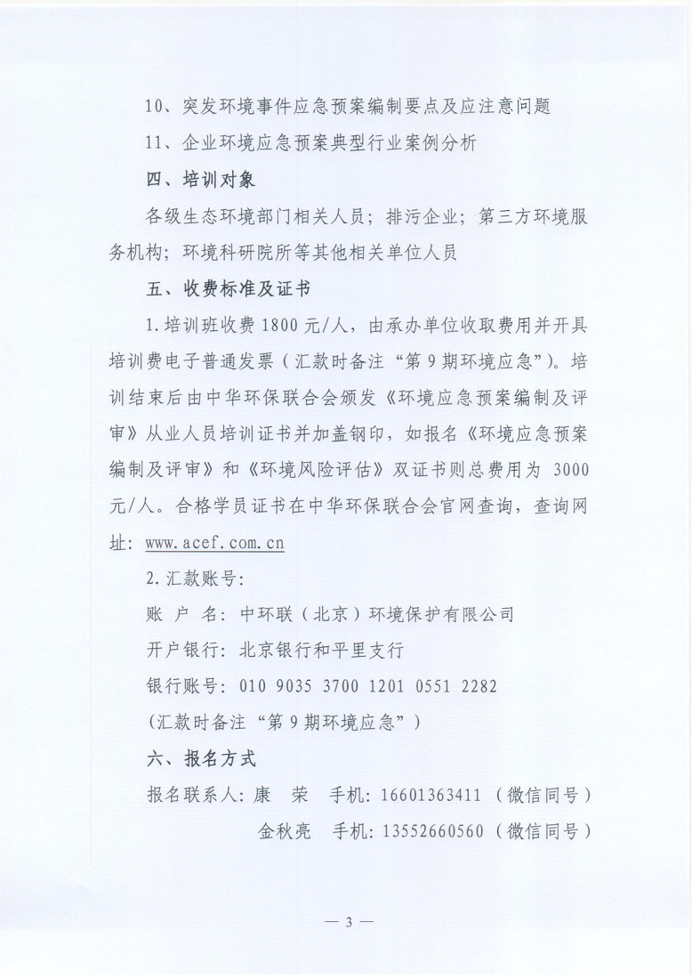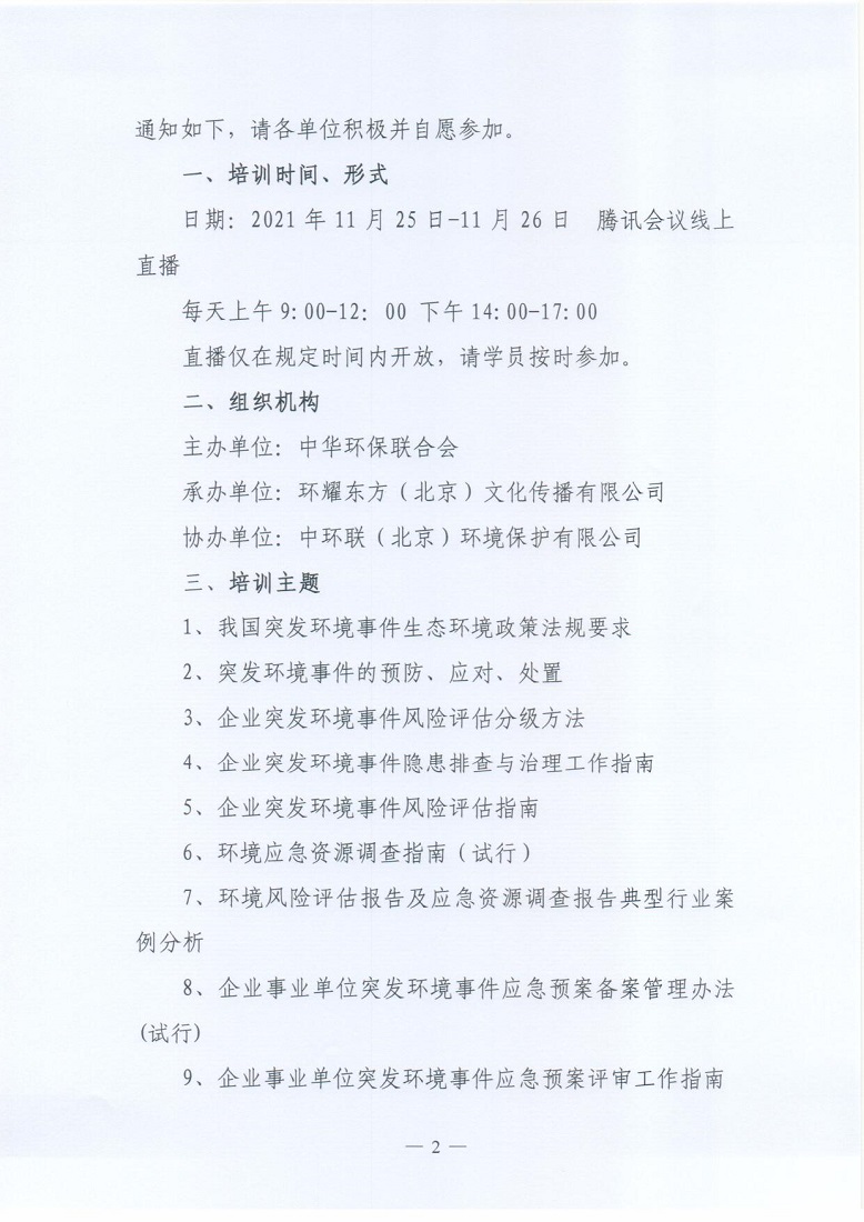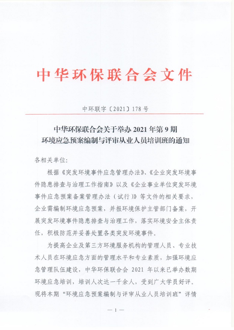 关于举办2021年第9期环境应急预案编制与评审从业人员培训班的通知