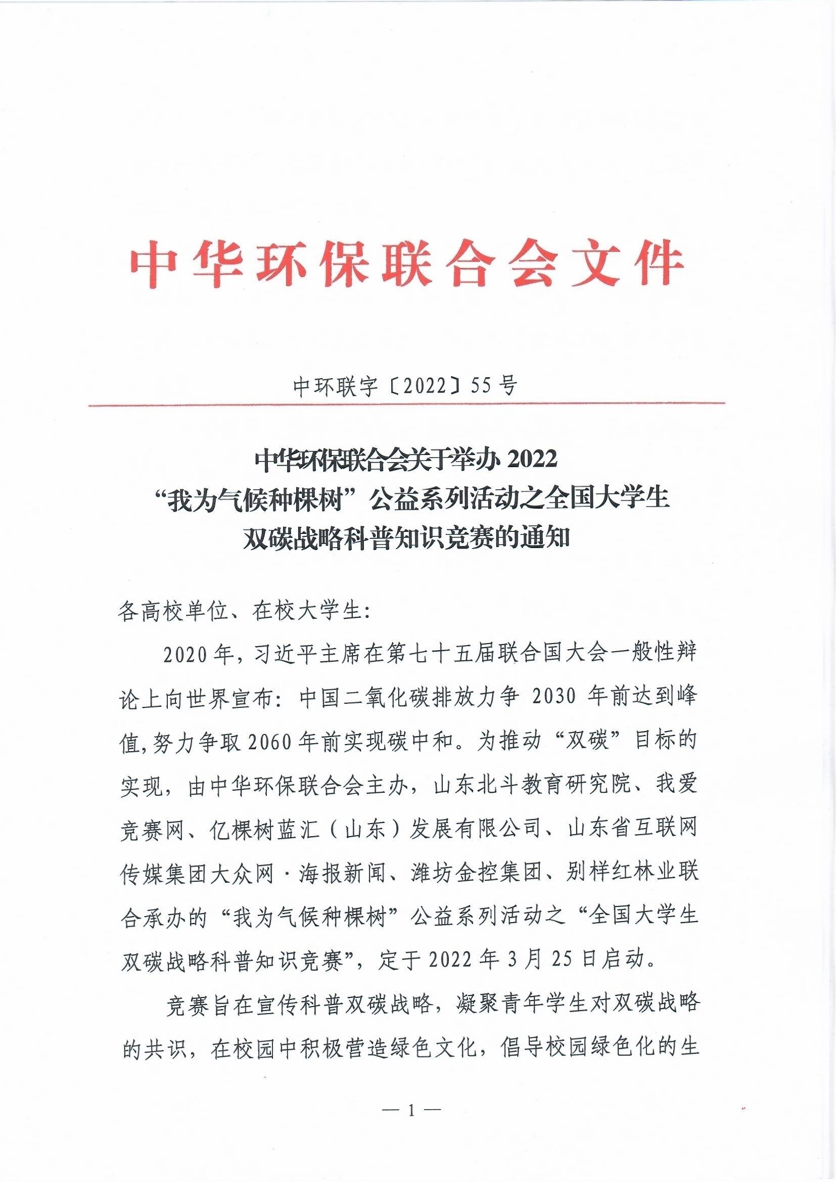 关于举办2022“我为气候种棵树”公益系列活动之全国大学生双碳战略科普知识竞赛的通知