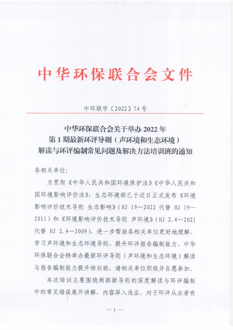 关于举办2022年第1期最新环评导则(声环境和生态环境)解读与环评编制常见问题及解决方法培训班的通知