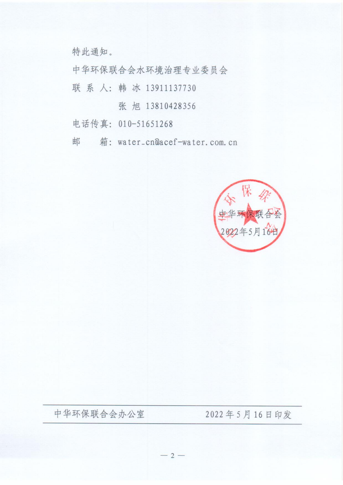 中华环保联合会水环境治理专业委员会