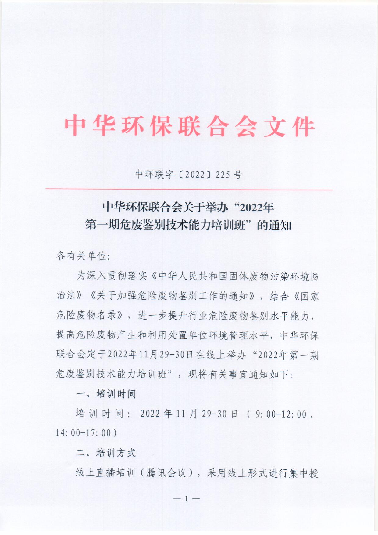 关于举办"2022年第一期危废鉴别技术能力培训班"的通知