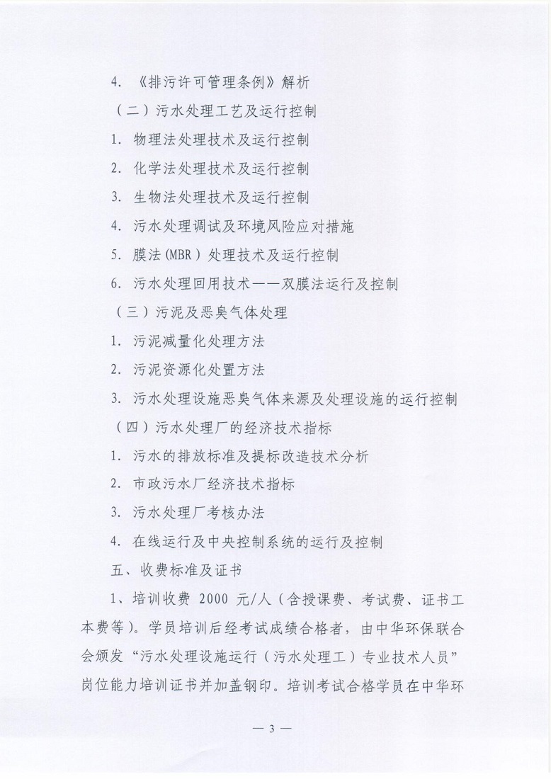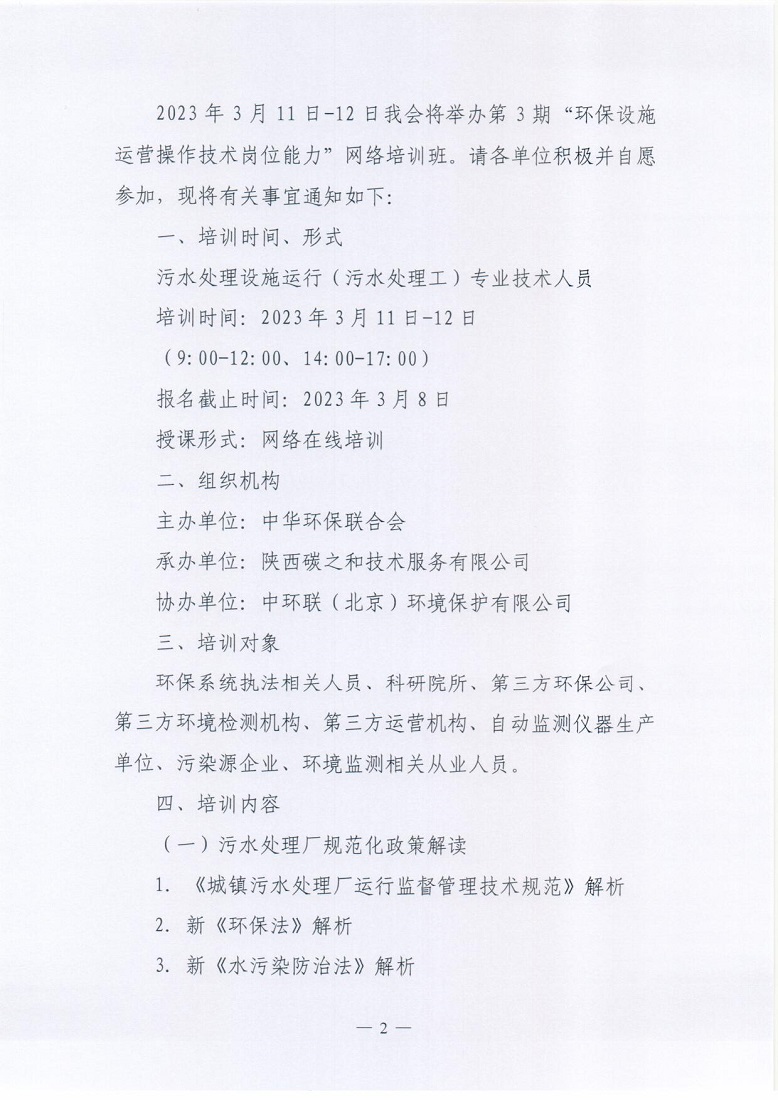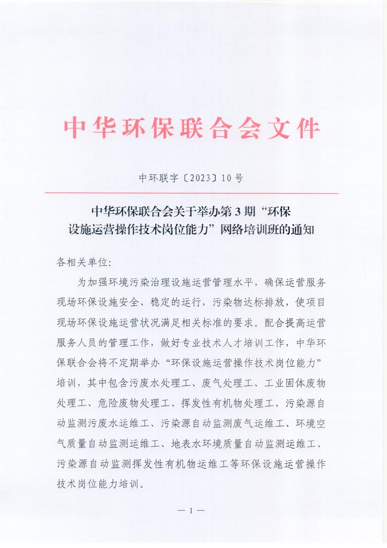 关于举办第3期“环保设施运营操作技术岗位能力”网络培训班的通知