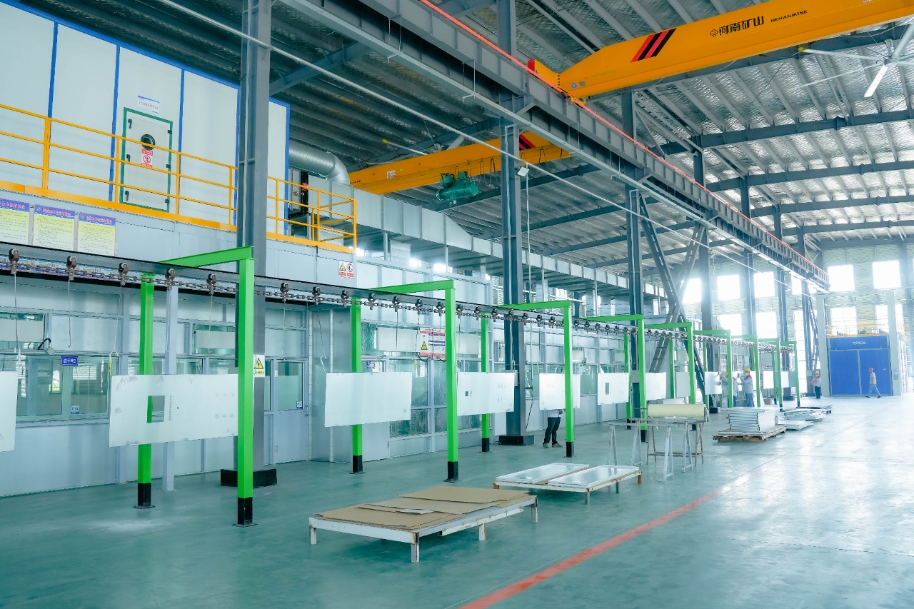 图为集中喷涂中心“绿岛”项目中自动悬挂输送装置正有序运行