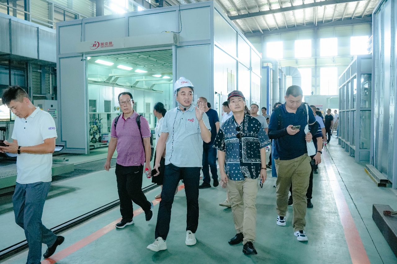 图为与会人员参观江苏景中景工业涂装设备有限公司年可加工20万件喷涂件的集中喷涂中心“绿岛”项目基地