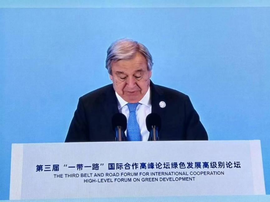 (联合国秘书长古特雷斯出席第三届“一带一路”国际合作高峰论坛绿色发展高级别论坛并致辞)