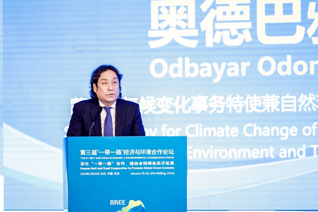 蒙古国气候变化事务特使兼自然环境与旅游部部长顾问奥德巴雅尔主旨报告中表示,希望通过论坛达成最广泛的合作。包括引进最先进的技术、中国和蒙古国之间大规模全球可再生能源的合作、建立市场机制,更好地使用双边资源等。同时,也希望在更好实现可持续的发展方面向中国学习。他说:“‘一带一路’给我们一个独一无二的机会,可以促进全球层面上的合作,实现全球的可持续发展。我们非常愿意能够共同建立一个可持续生态友好型的未来。”
