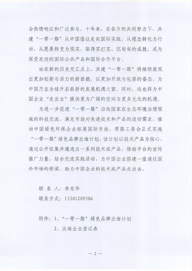 关于开展“一带一路”绿色品牌出海计划的通知