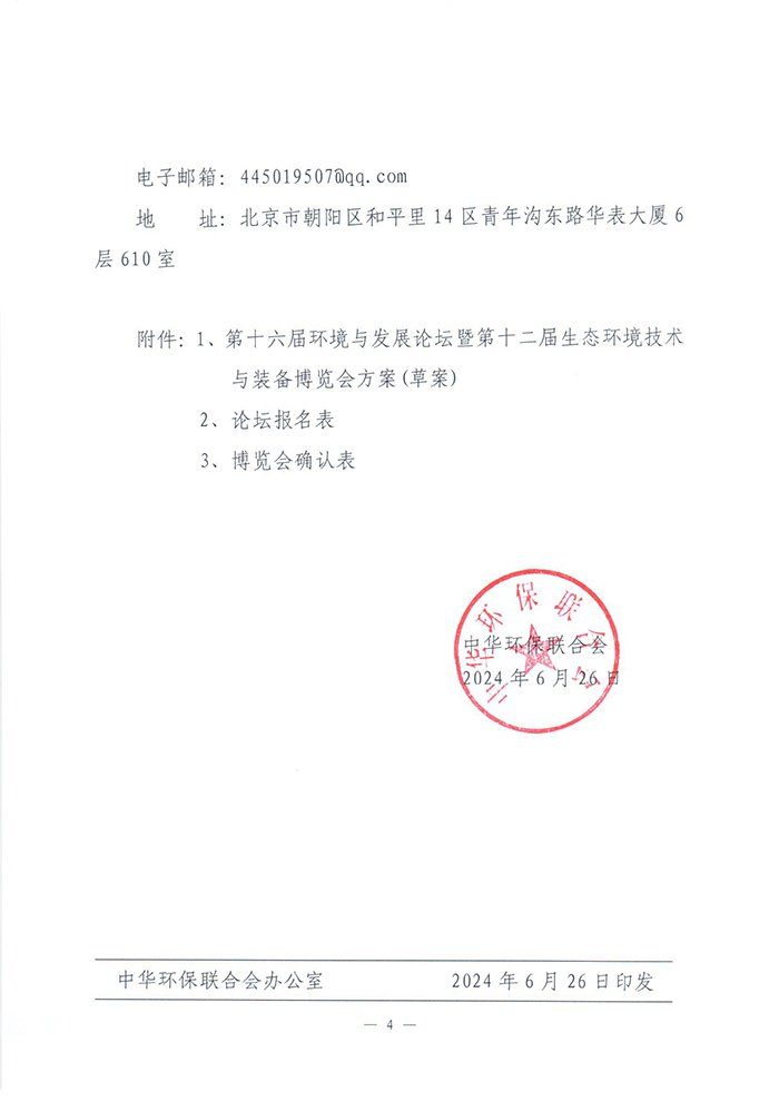 关于第十六届环境与发展论坛暨第十二届生态环境技术与装备博览会邀请函