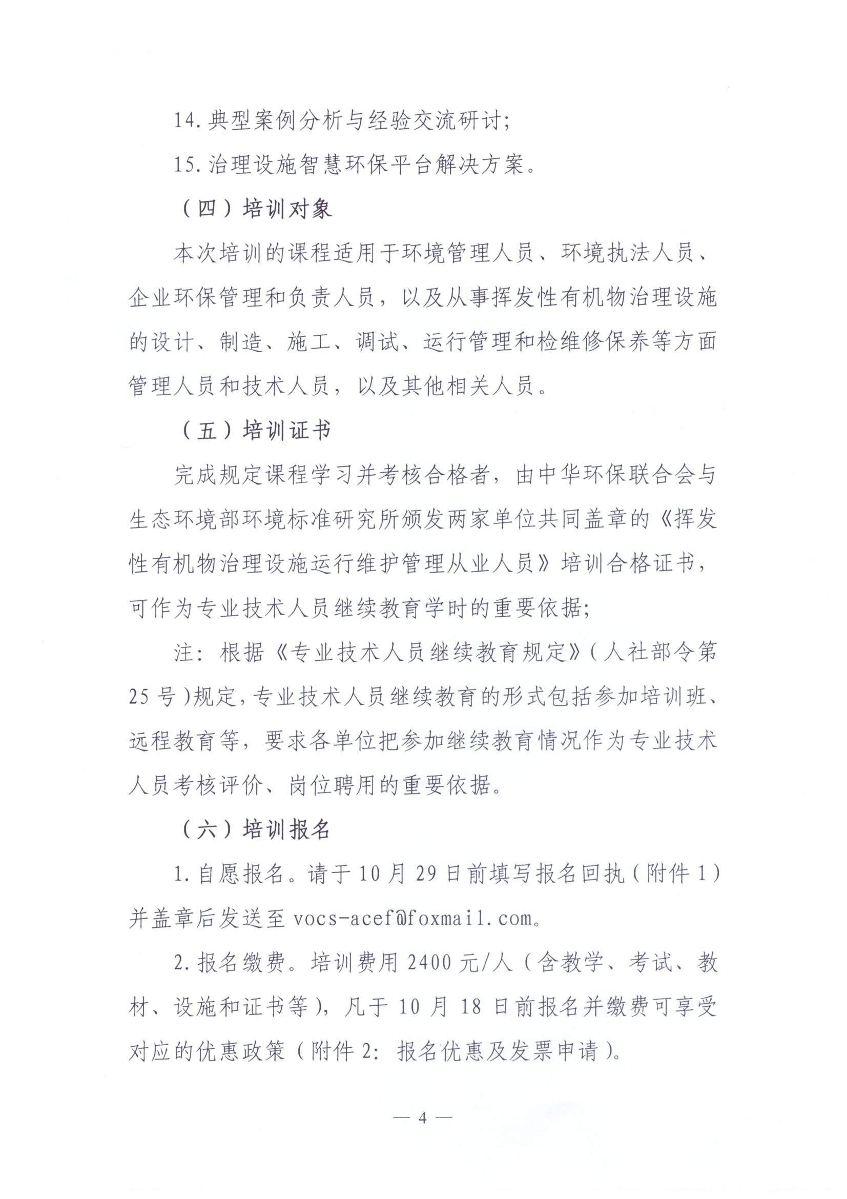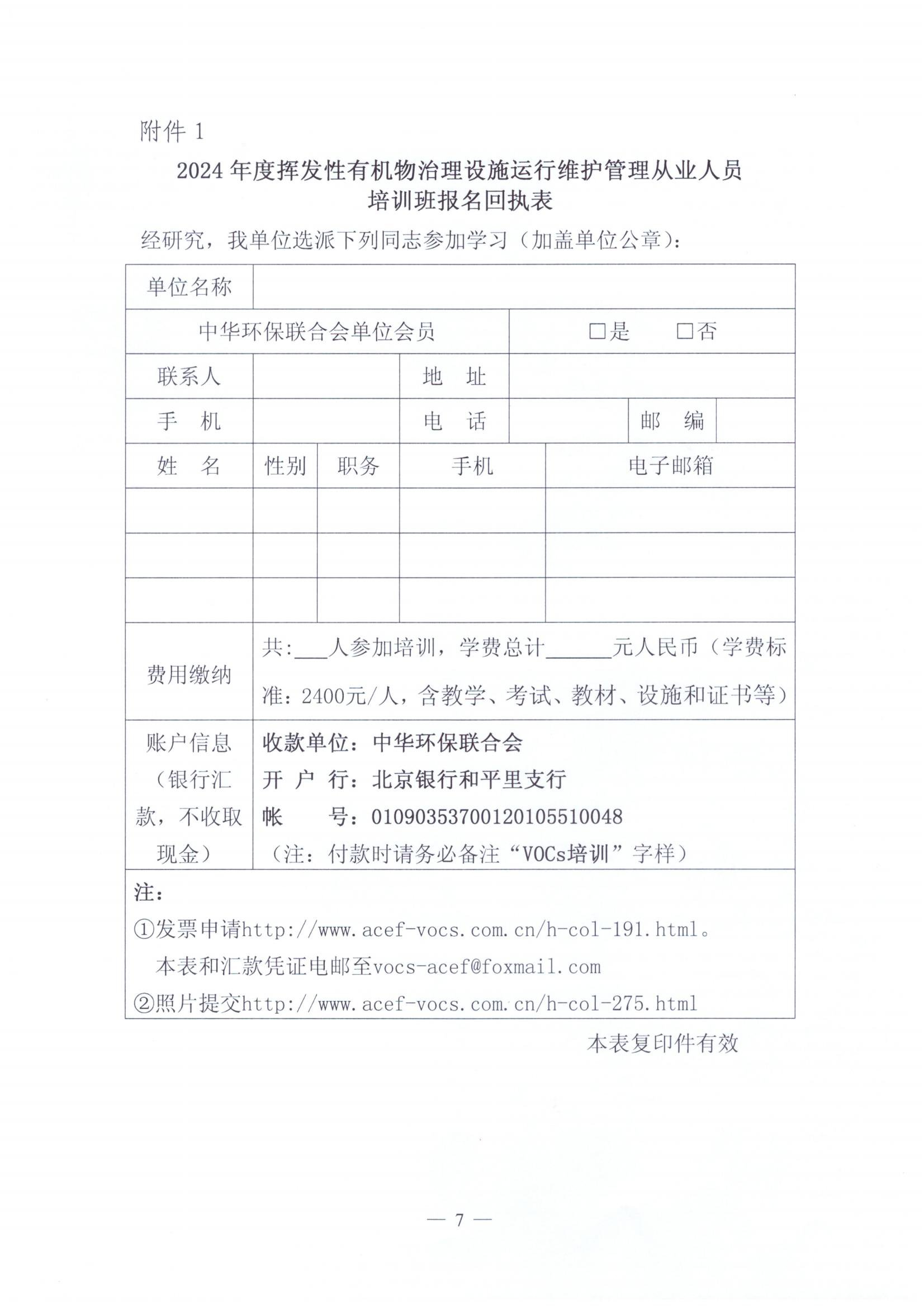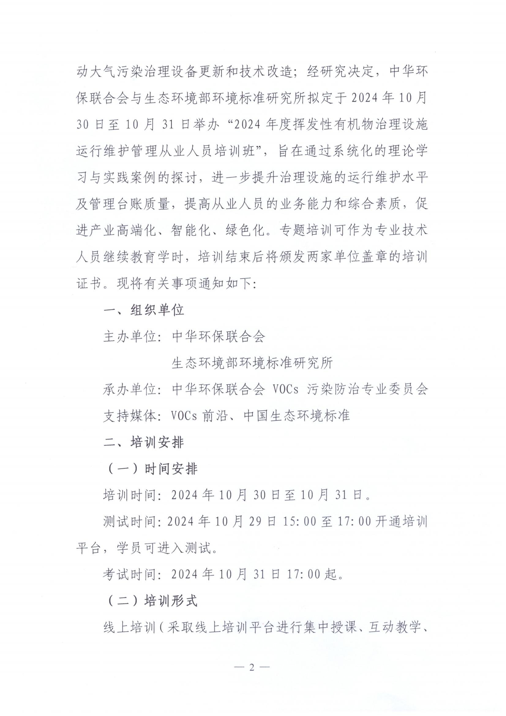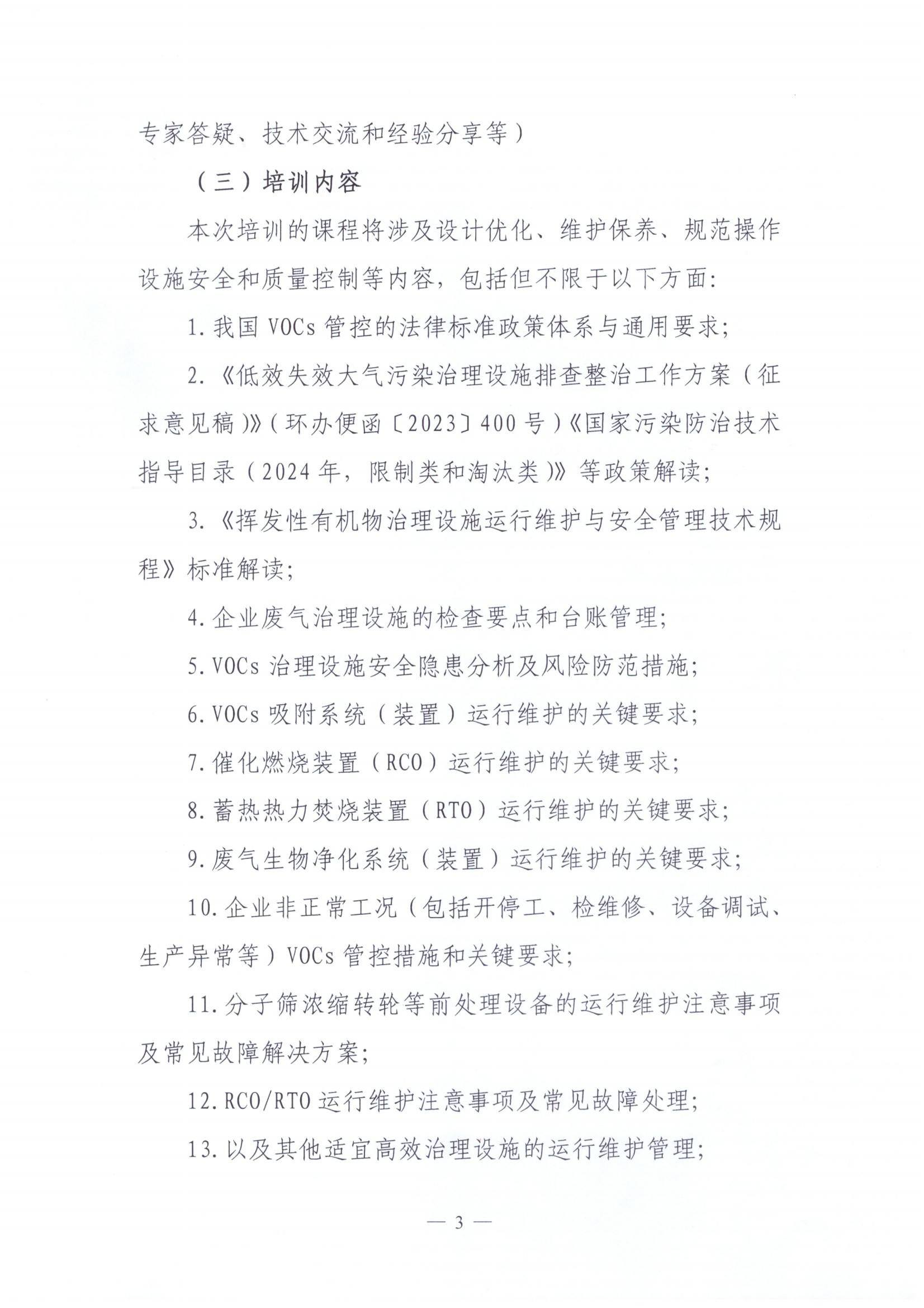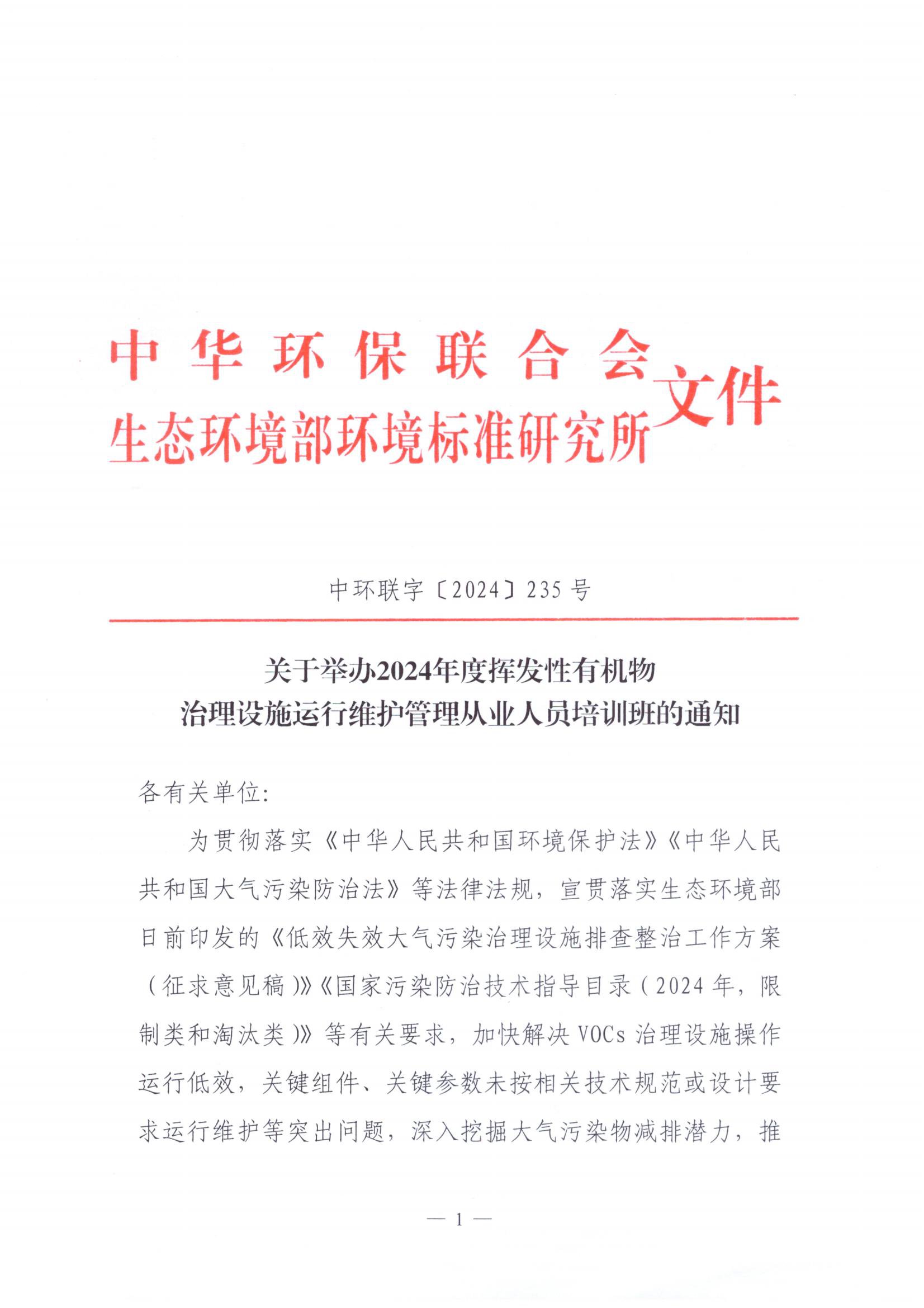 关于举办2024年度挥发性有机物治理设施运行维护管理从业人员培训班的通知