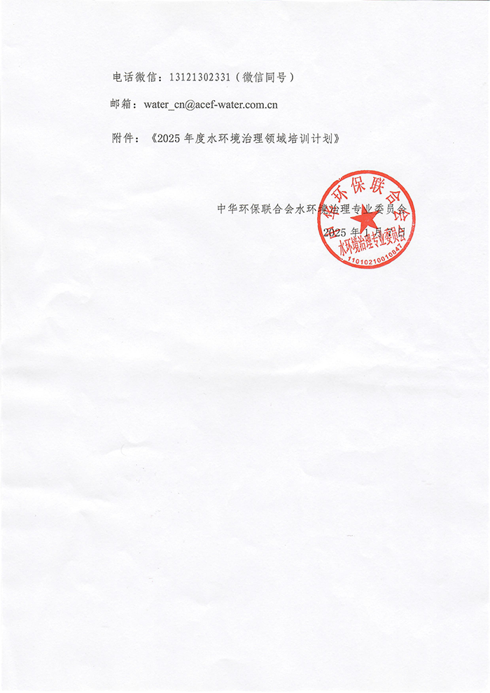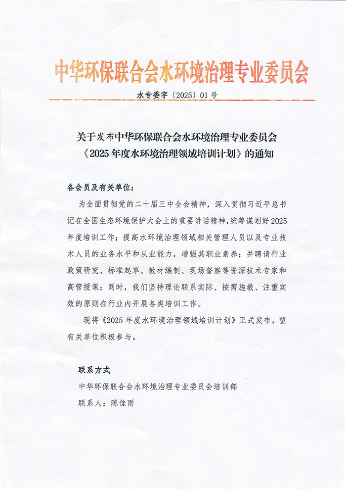 关于发布中华环保联合会水环境治理专业委员会2025年度水环境治理领域培训计划》的通知
