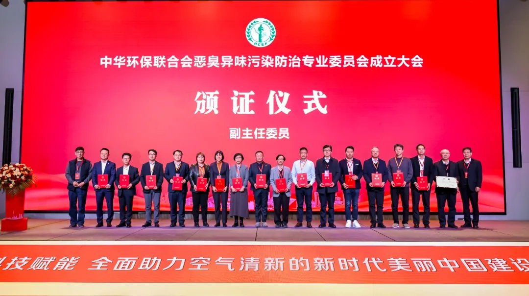 领导嘉宾共同为中华环保联合会恶臭异味污染防治专业委员会揭牌。