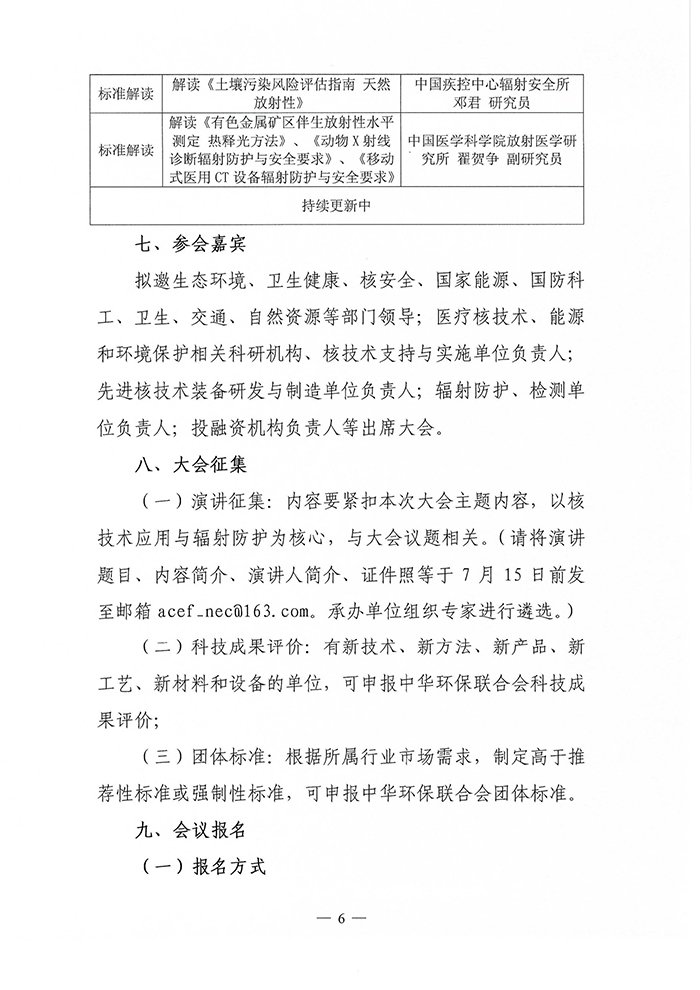 关于举办第二届核技术应用与辐射防护创新发展会议暨中华环保联合会核能核技术与生态环境保护专业委员会学术年会的通知 (第二轮)