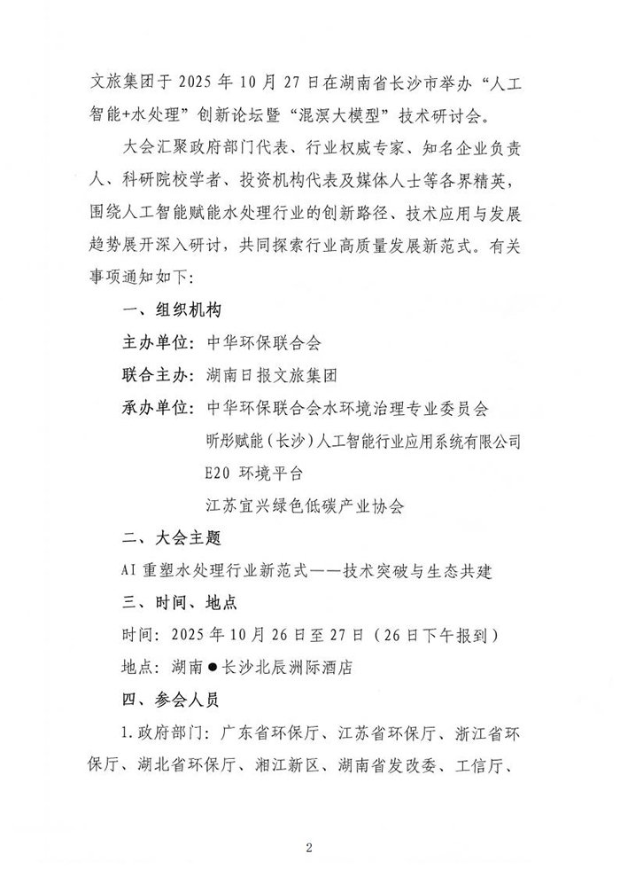 关于召开“人工智能+水处理”创新论坛暨“混溟大模型”技术研讨会的通知