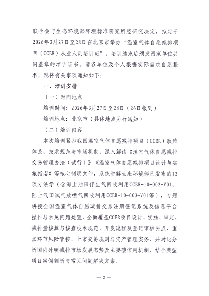 关于举办温室气体自愿减排项目(CCER)从业人员培训班的通知