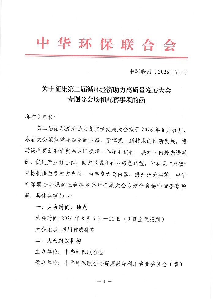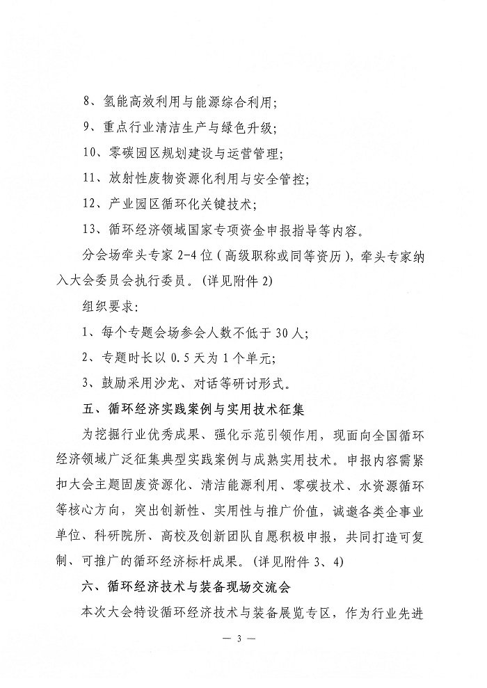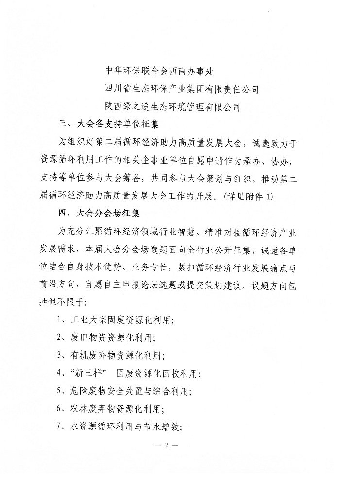 关于征集第二届循环经济助力高质量发展大会专题分会场和配套事项的函