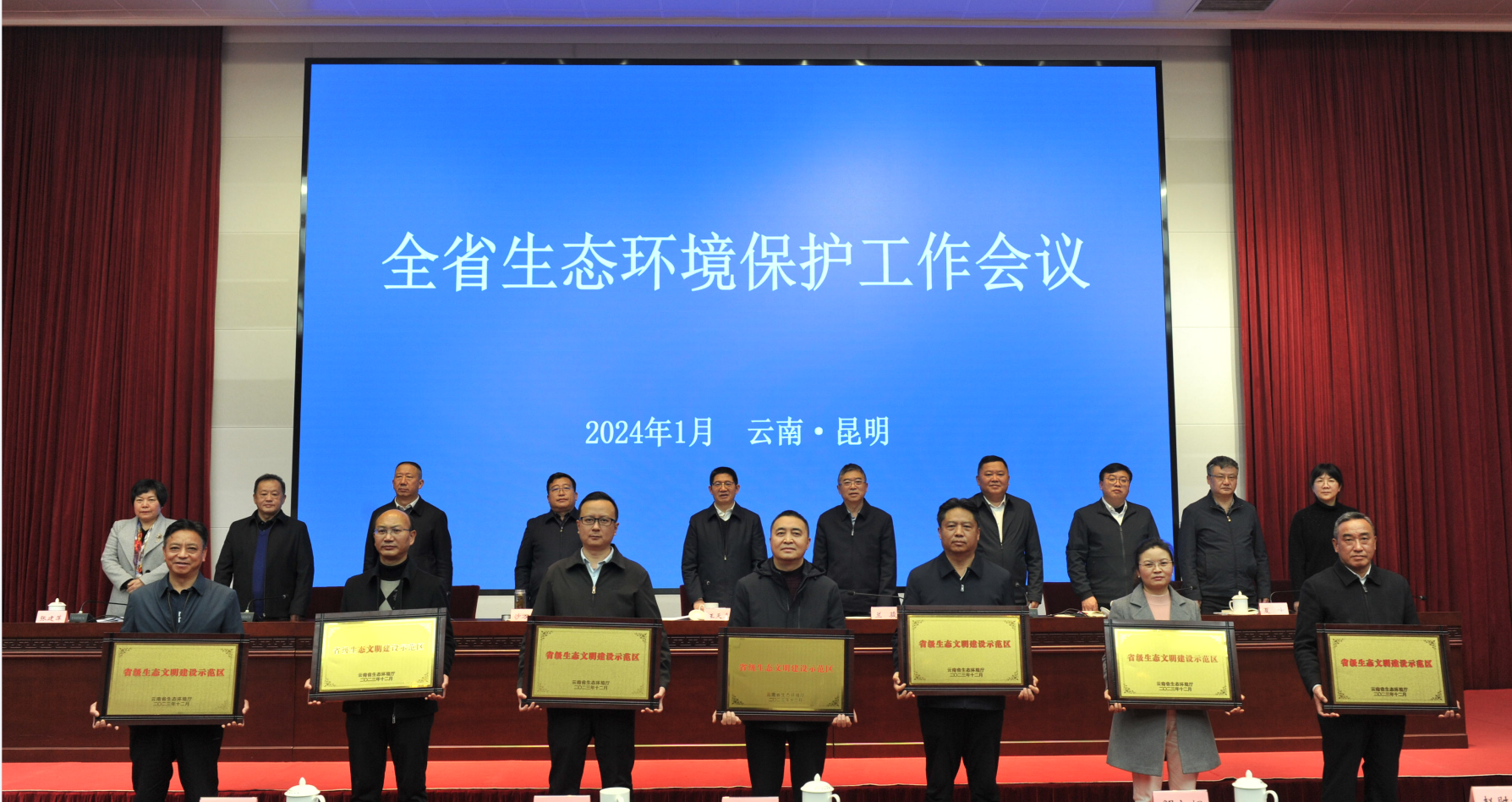 在日前举办的2024年云南省生态环境保护工作会议上,云南省生态环境厅为威信县、楚雄市、金平县、丘北县、古城区、福贡县、德钦县、维西县等8个获得2023年度省级生态文明建设示范区命名的地区授牌。