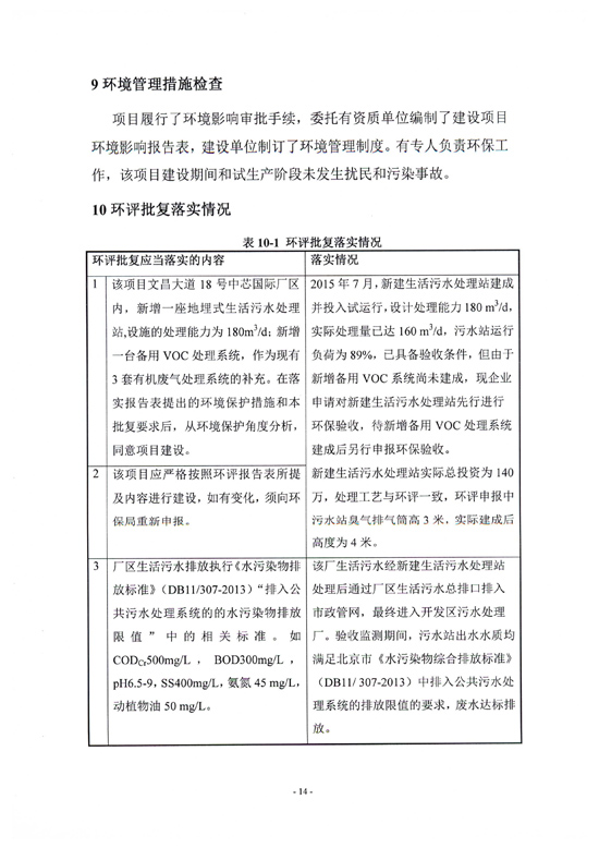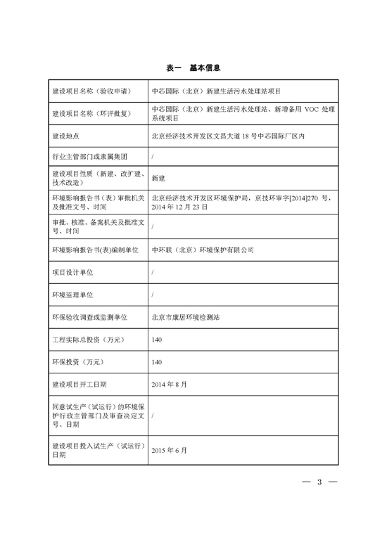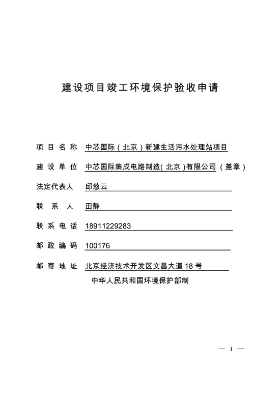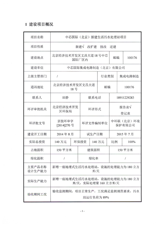 中芯国际(北京)新建生活污水站项目竣工环保验收信息公示