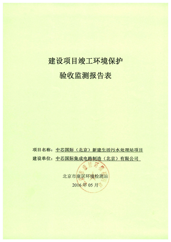 根据《建设项目竣工环境保护验收管理办法》(国家环境保护总局第13号令)和《建设项目环境影响评价政府信息指南》等有关法律法规的规定,现将中芯国际(北京)新建生活污水站项目竣工环保验收监测情况进行公示。具体公示内容见下方相关文件。