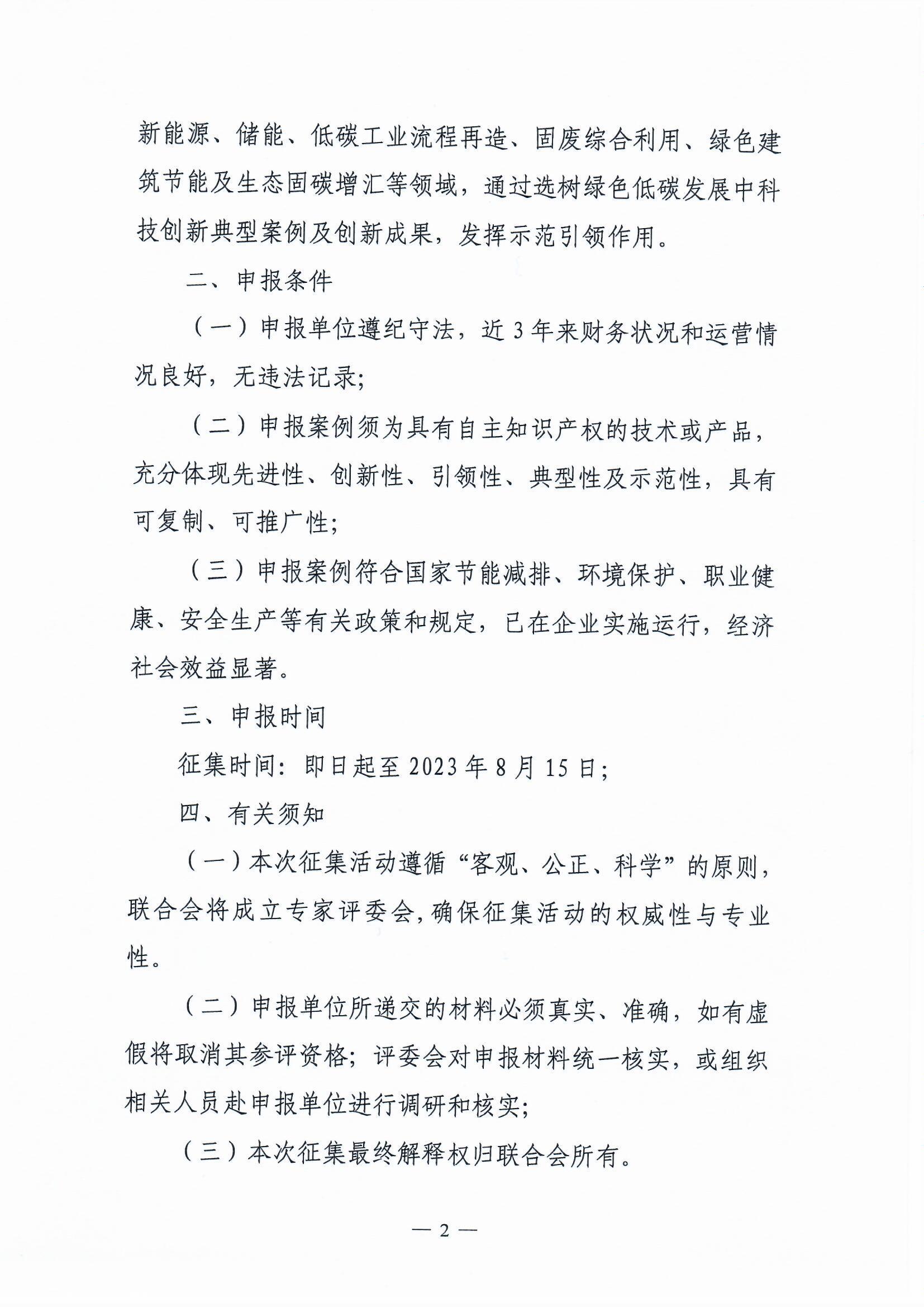 关于开展征集碳达峰碳中和创新技术解决方案及典型案例的通知(2023) (第一批)